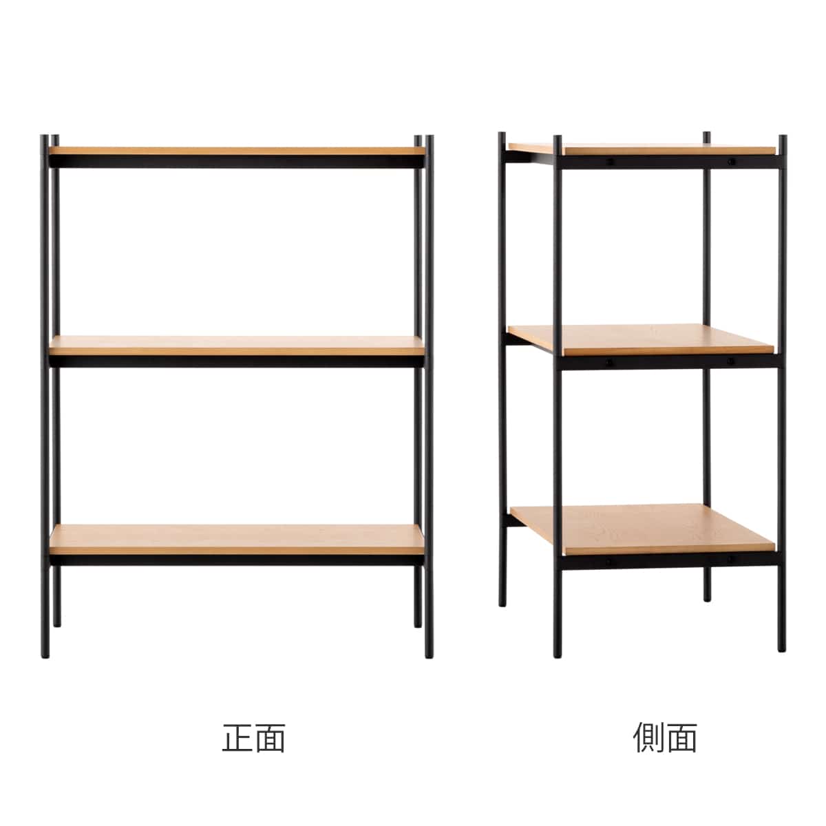 | 安心の1段あたり耐荷重100kg 構造部には、全体をしっかりと支える丈夫なスチールを採用。傷が目立ちにくい粉体塗装を施しています。 | 天然木の突板 棚板にはナチュラルな風合いを持つ天然木の突板を使用しています。表面は耐水性に優れたラッカー塗装仕上げです。 |