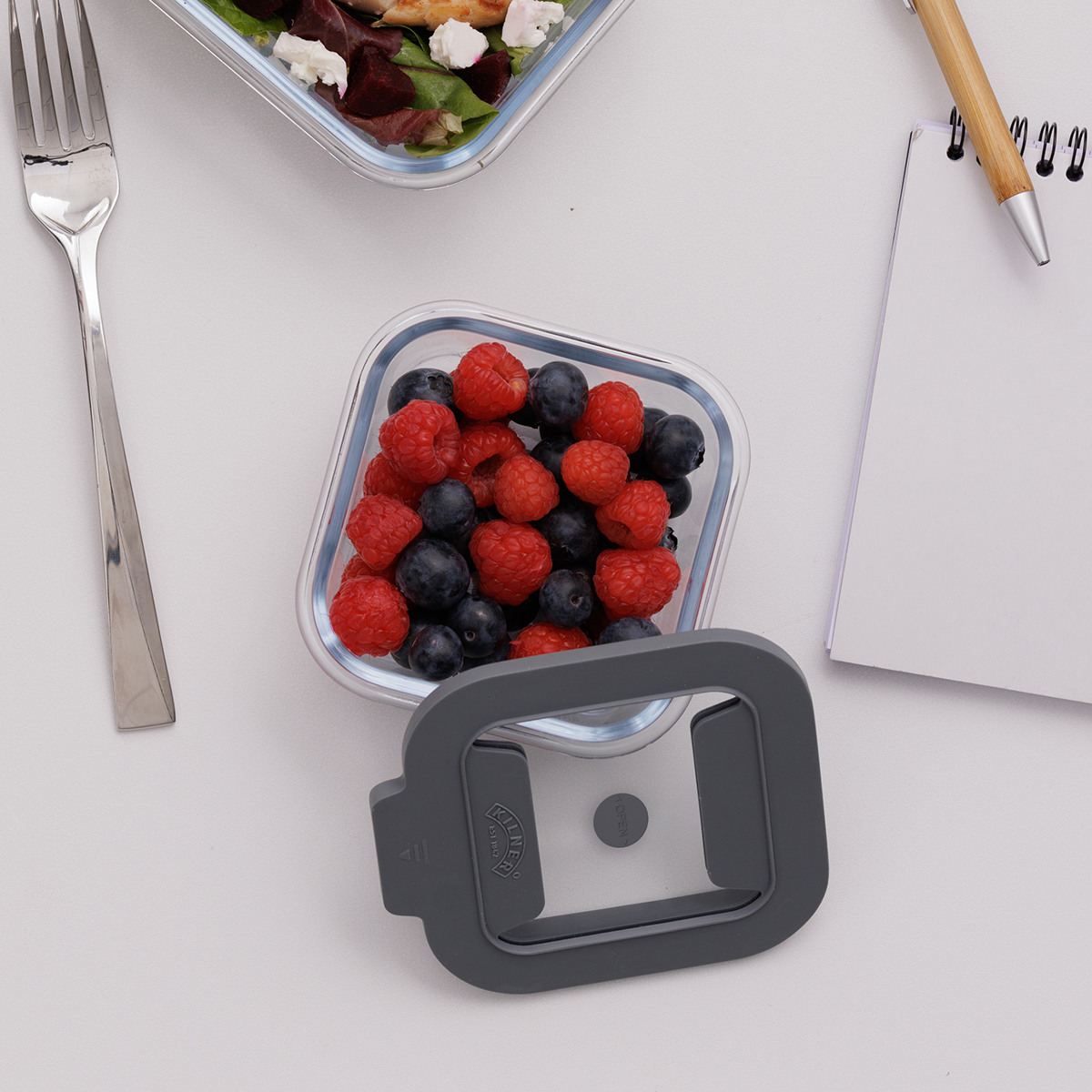 小鉢や常備菜にぴったりなスクエア型の0.31Lサイズです。少量の野菜や果物・ナッツ、副菜などちょっとした一品の保存に最適です。