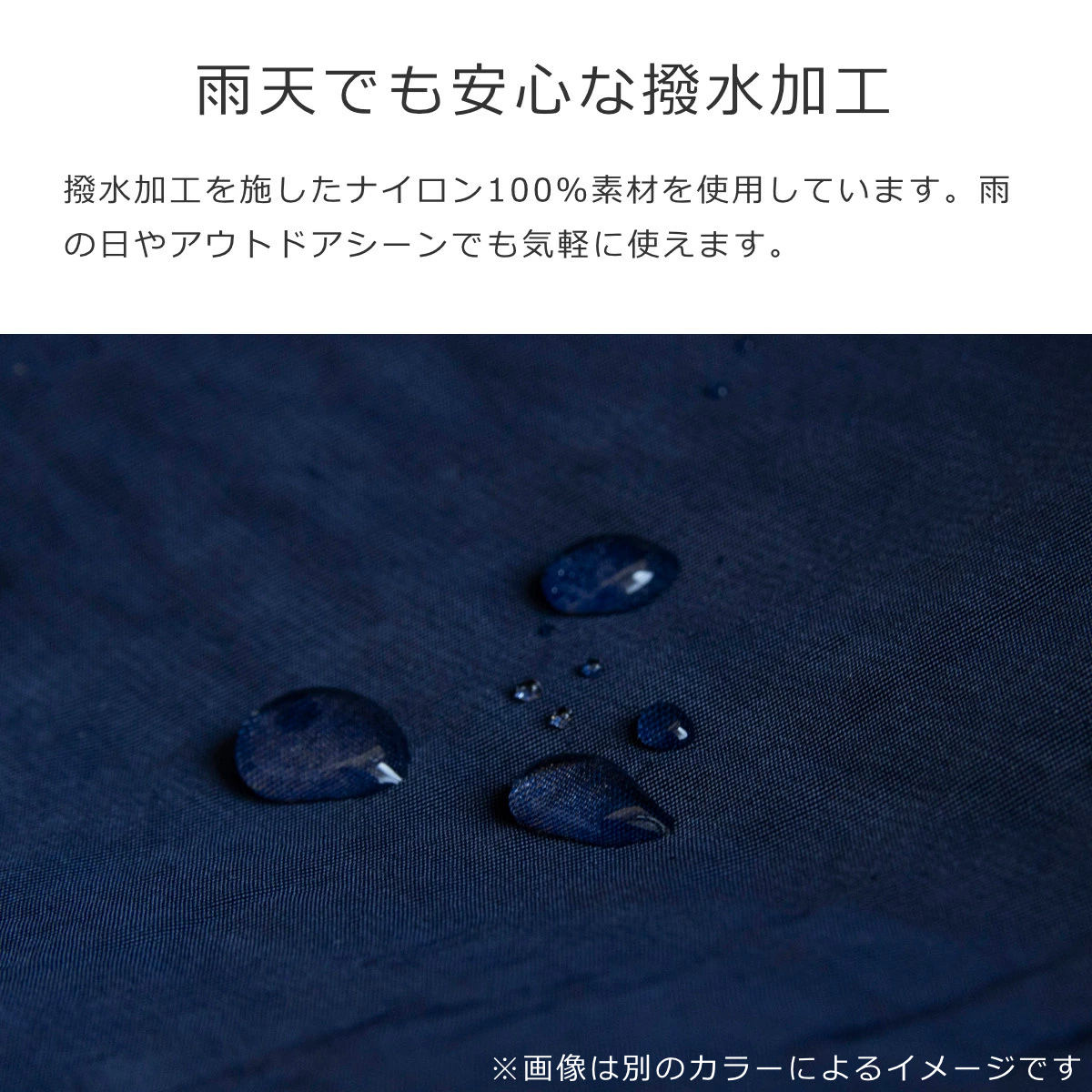 撥水加工を施したナイロン100%素材を使用しているので、急な雨でも安心です。