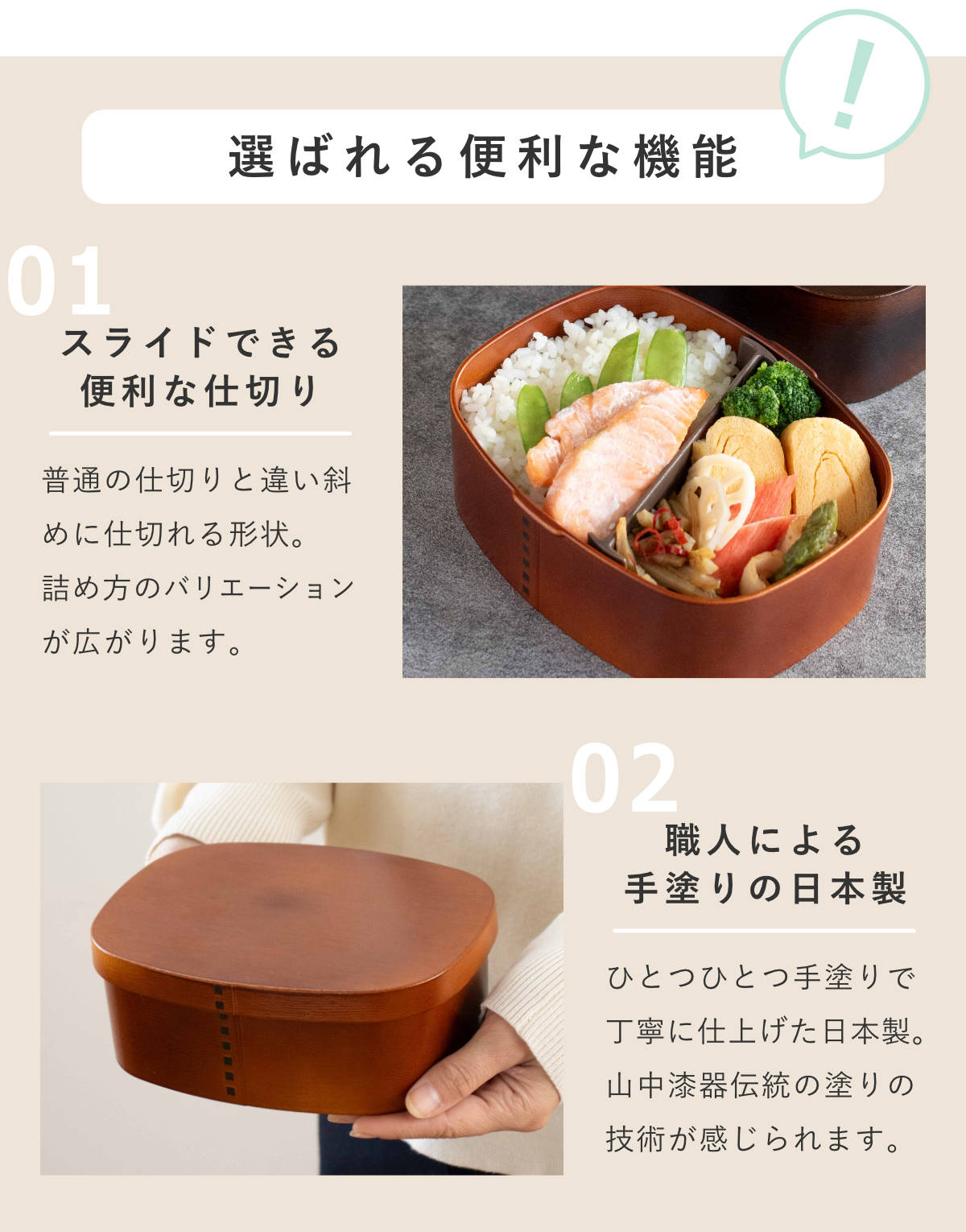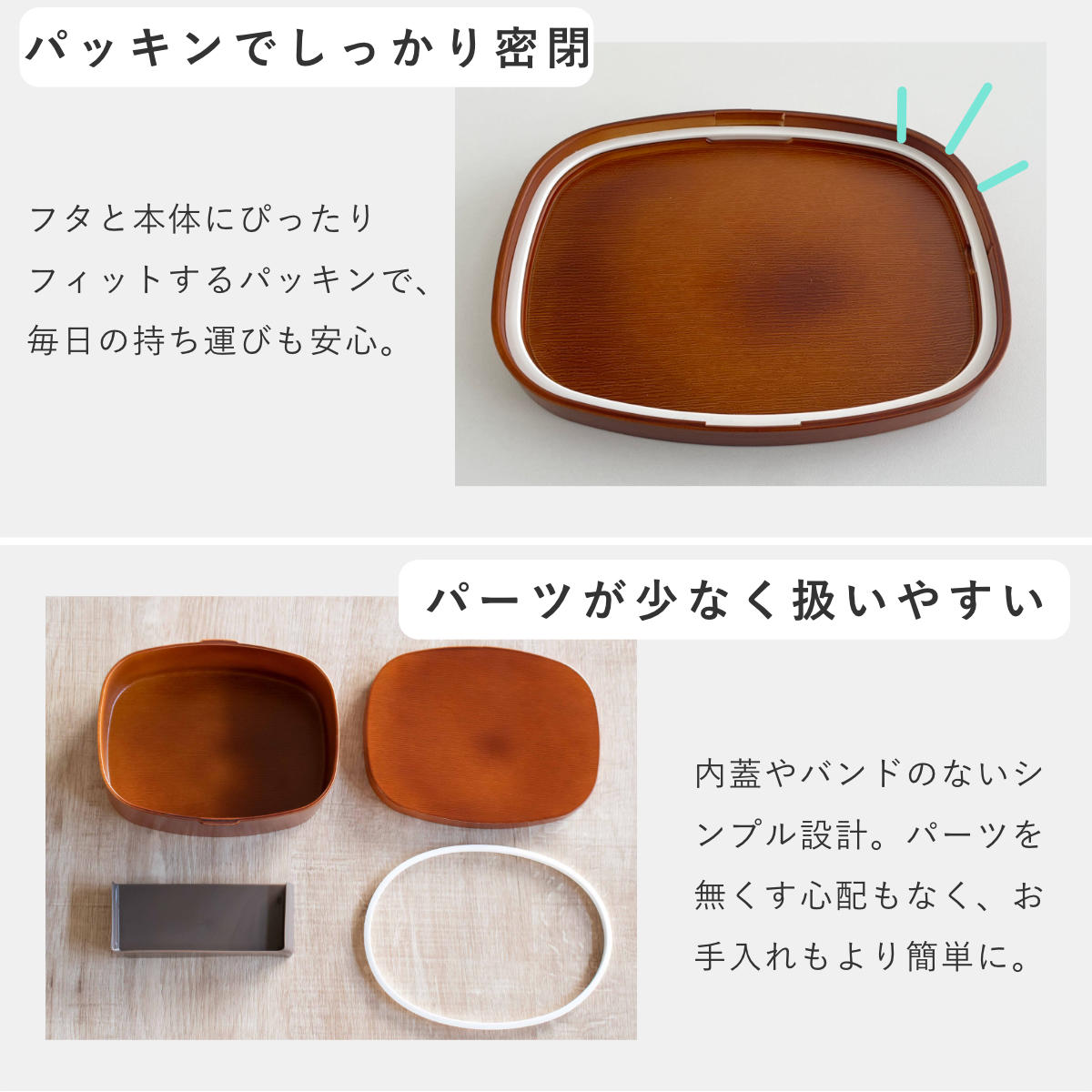 | パーツ別耐熱温度 | 本体、蓋、仕切り:140度 パッキン:230度 |