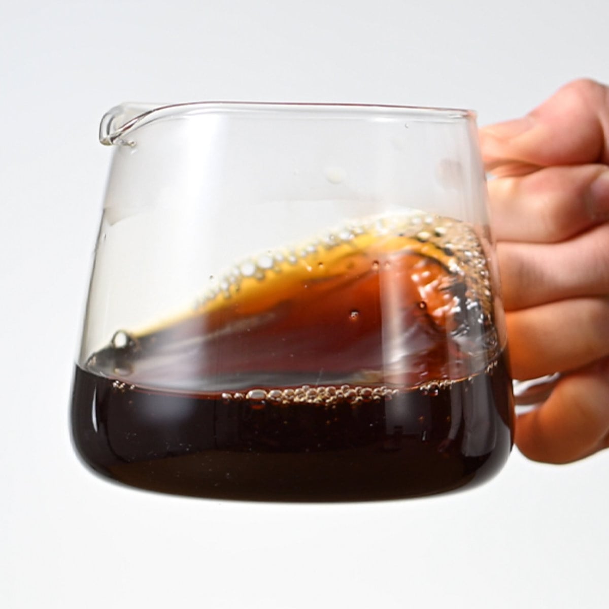 底が丸いラウンド形状で、ドリップ後も豆や抽出液が残りにくく、簡単にムラなく混ぜられるため、味わいを一定に仕上げられます。