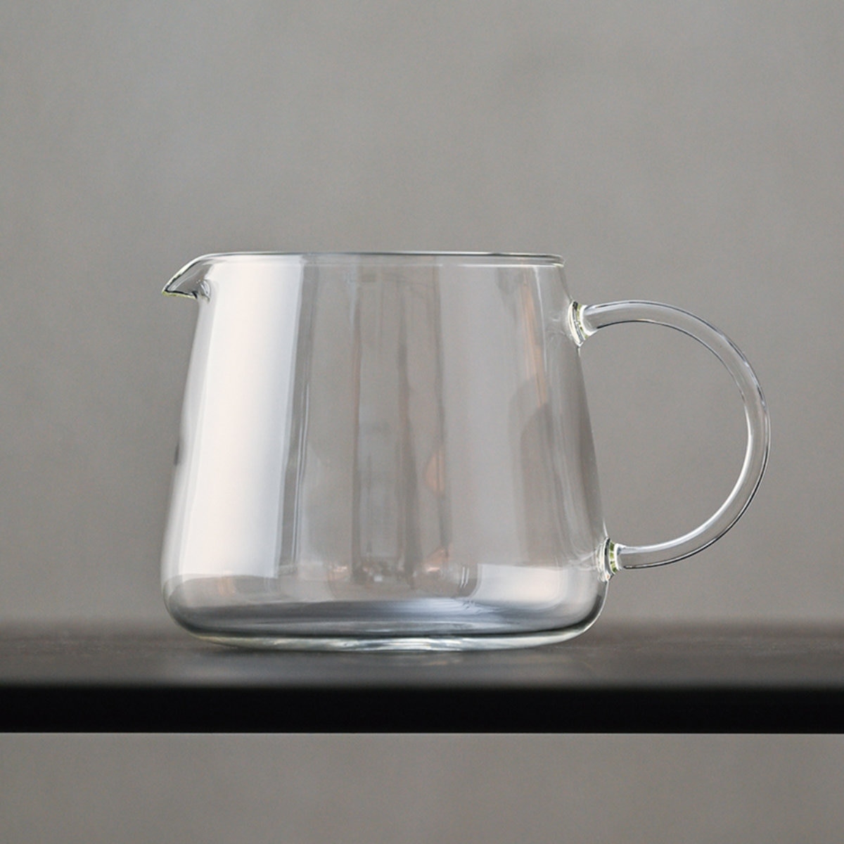 手にフィットする大きめハンドルで、持ちやすさと注ぎやすさを追求した設計です。耐熱ガラス製で中身の量が確認しやすく、注ぐときのコントロールも簡単です。