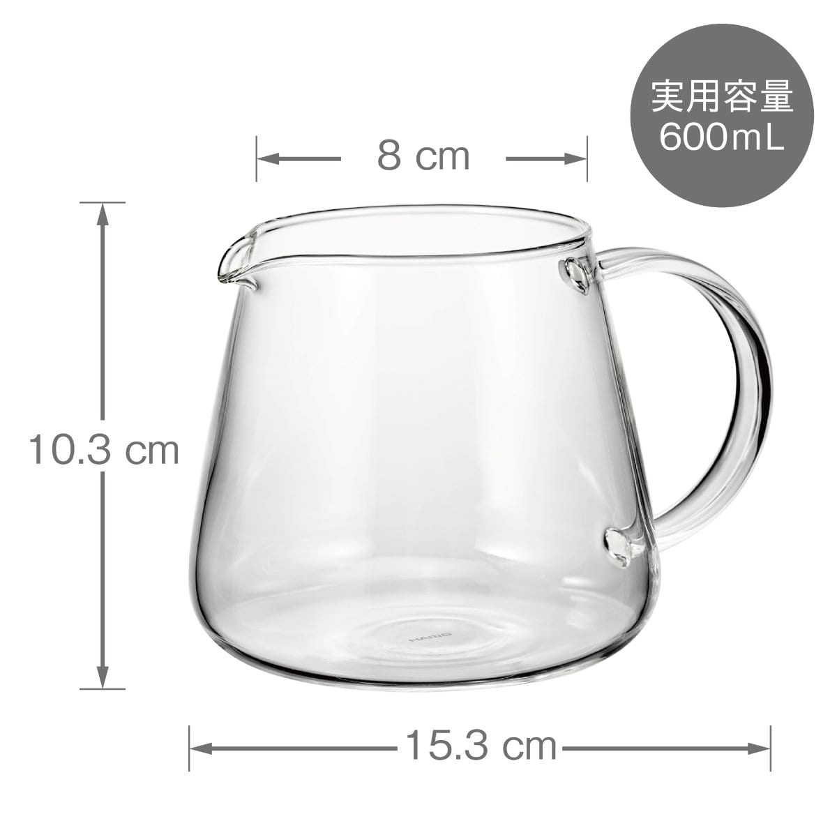 手にフィットする大きめハンドルで、持ちやすさと注ぎやすさを追求した設計です。耐熱ガラス製で中身の量が確認しやすく、注ぐときのコントロールも簡単です。