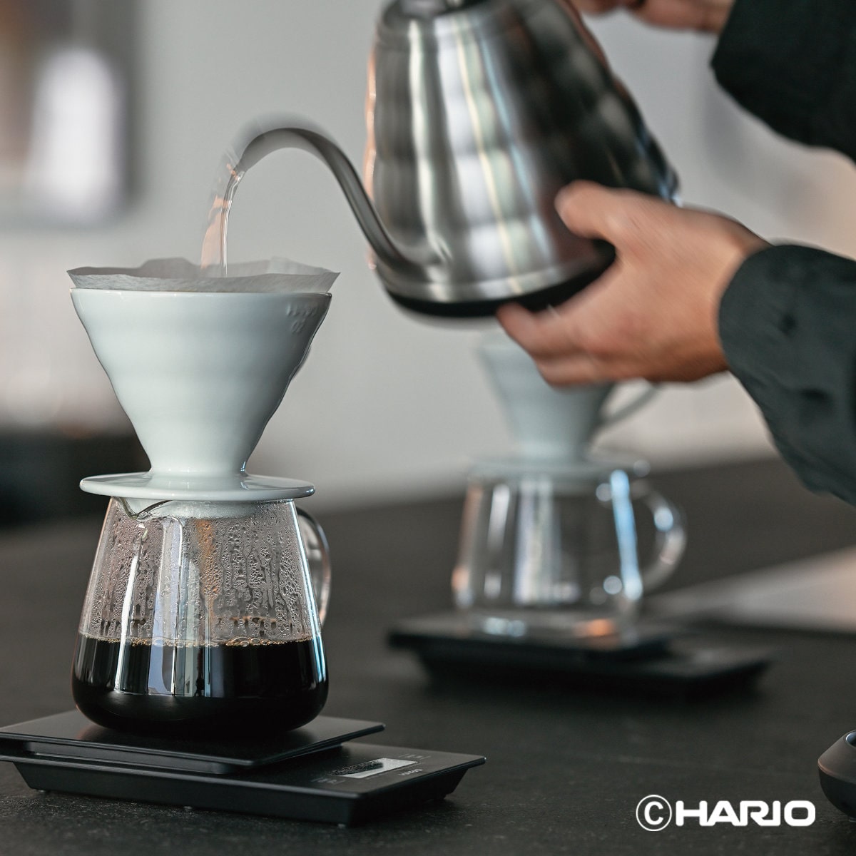 口径80mmの設計で、V60シリーズをはじめとするさまざまなドリッパーに対応します。複数のドリッパーを使い分けてもそのまま注げるので、抽出スタイルや豆の種類に応じた使い分けが可能です。