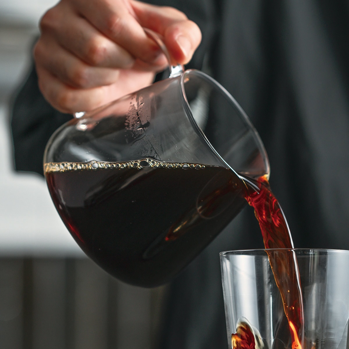 サーバーに溜まったコーヒーが美味しく見えるようこだわった、コロンとした可愛らしさと凛とした美しさを両立させたデザインです。1~4杯分のコーヒーを一度に抽出できる容量で、朝の家族分や来客時にも便利です。