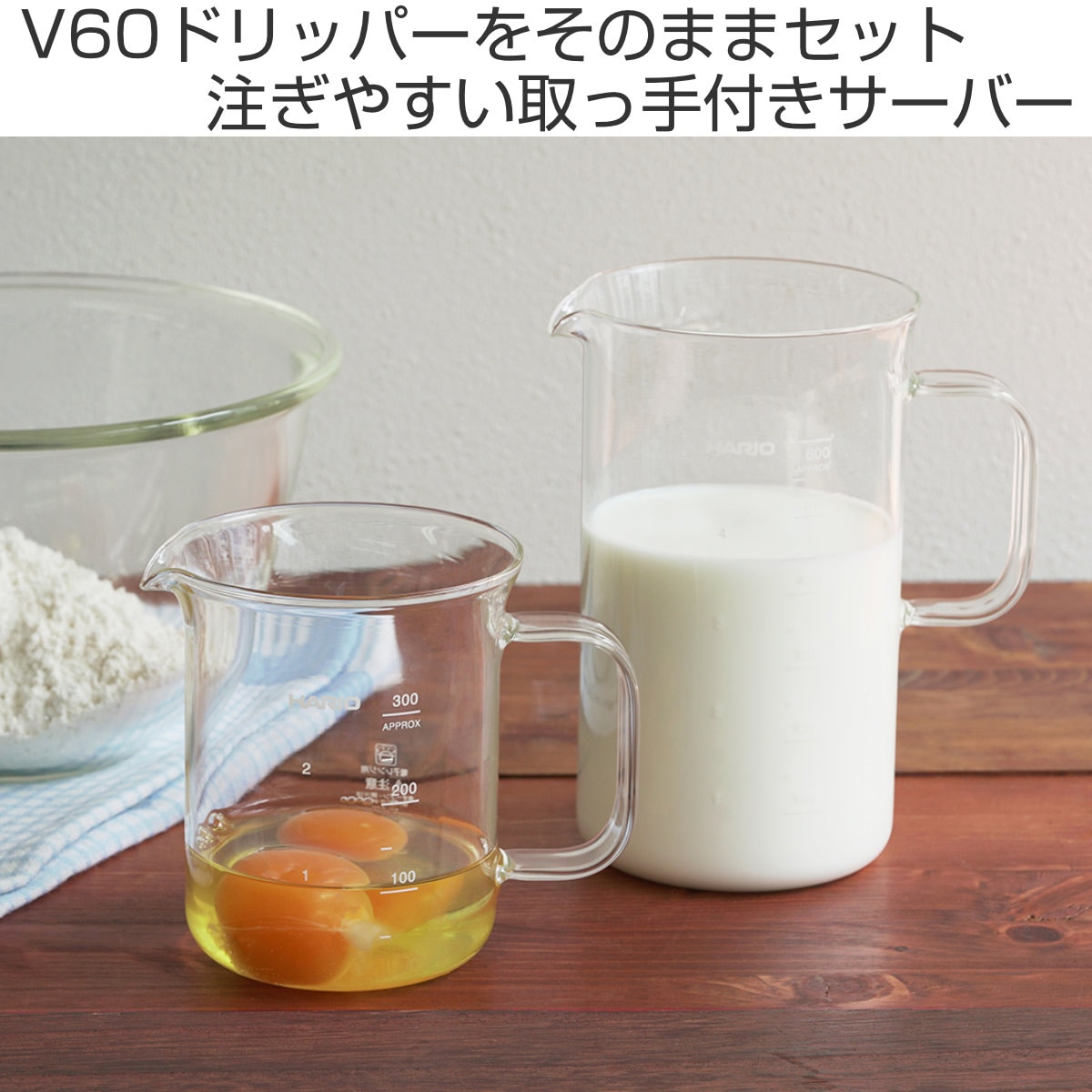 ビーカーサーバーには容量目盛りと杯数目盛りが付いており、抽出量が一目でわかるので、安定したコーヒー作りが可能です。お料理の際の計量カップとしても活躍します。