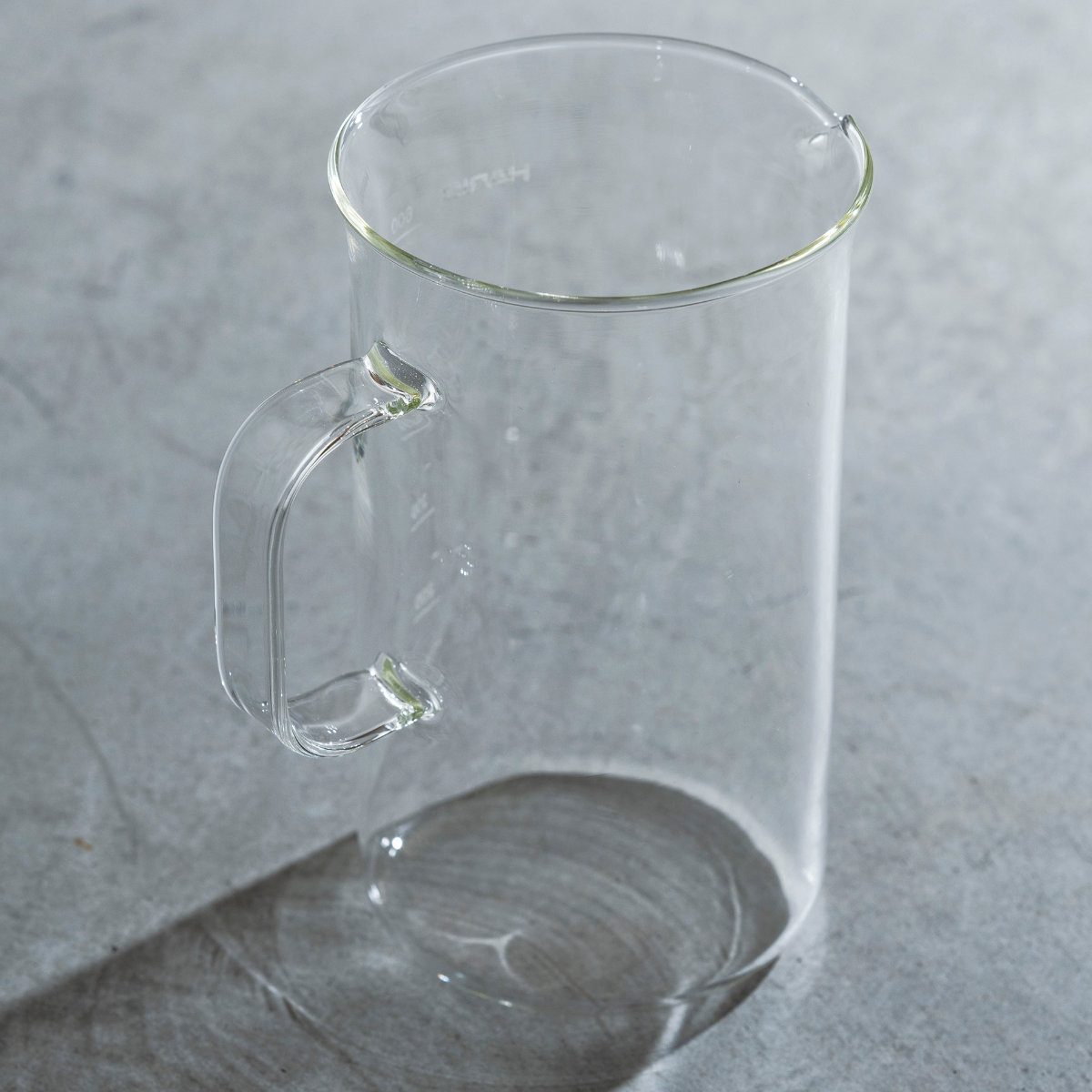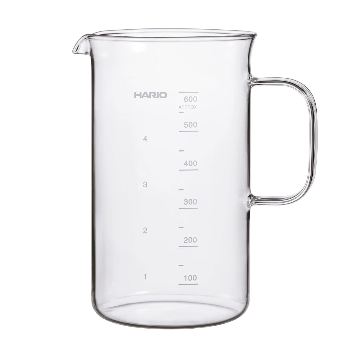 シンプルで機能的な耐熱ガラス製取っ手付きビーカーサーバー 600ml