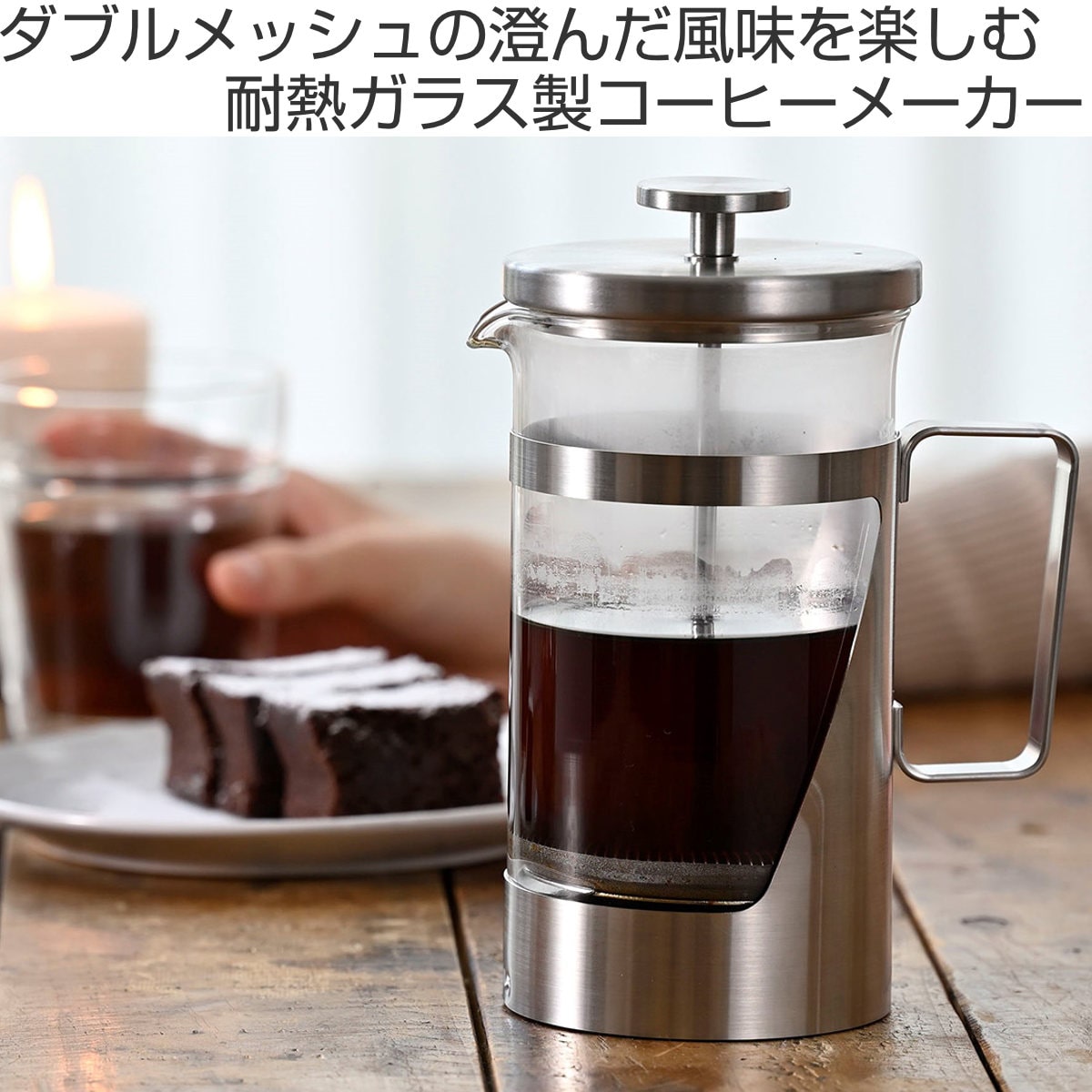 | 材質 | 本体:耐熱ガラス フタ・ツマミ・ホルダー・シャフト・フィルター一式:ステンレス |