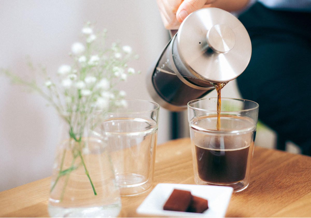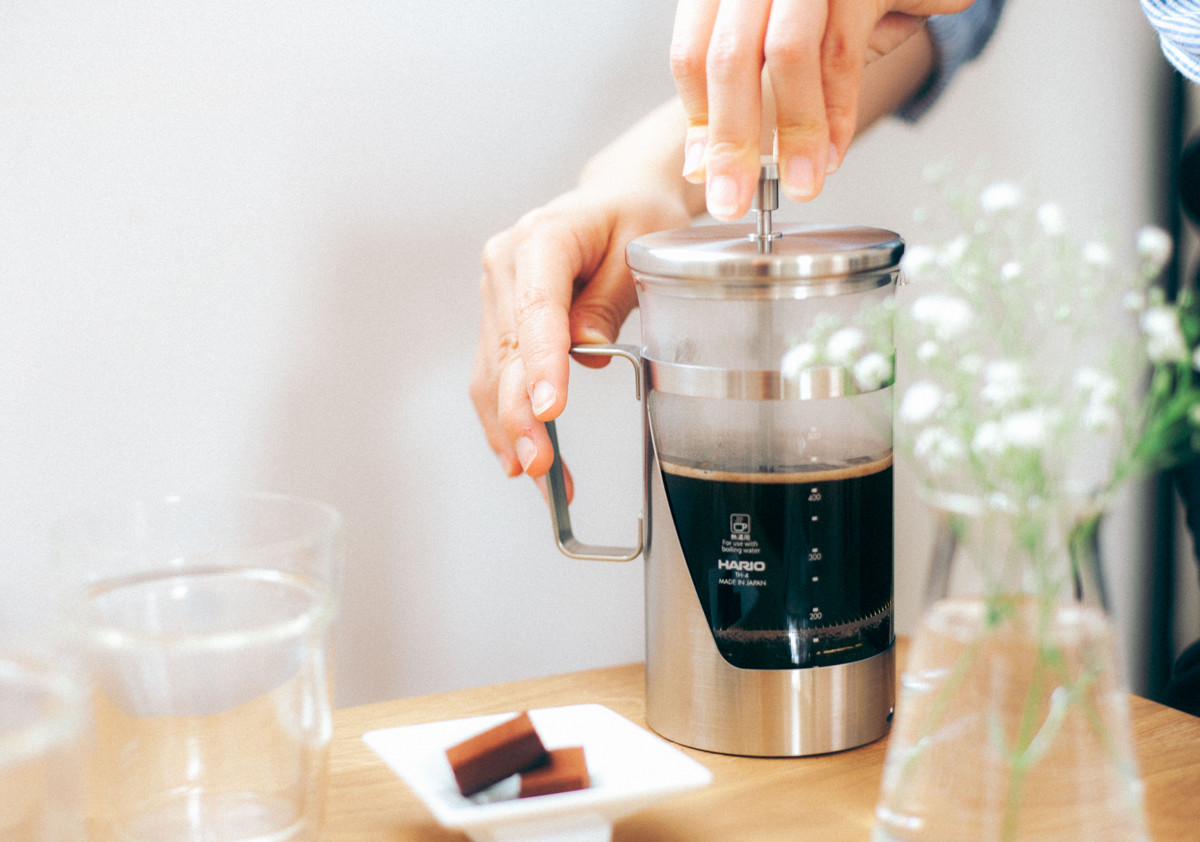 (コーヒーの場合はフィルターが下がりにくくなるので、2~3回に分けて押し下げてください。)