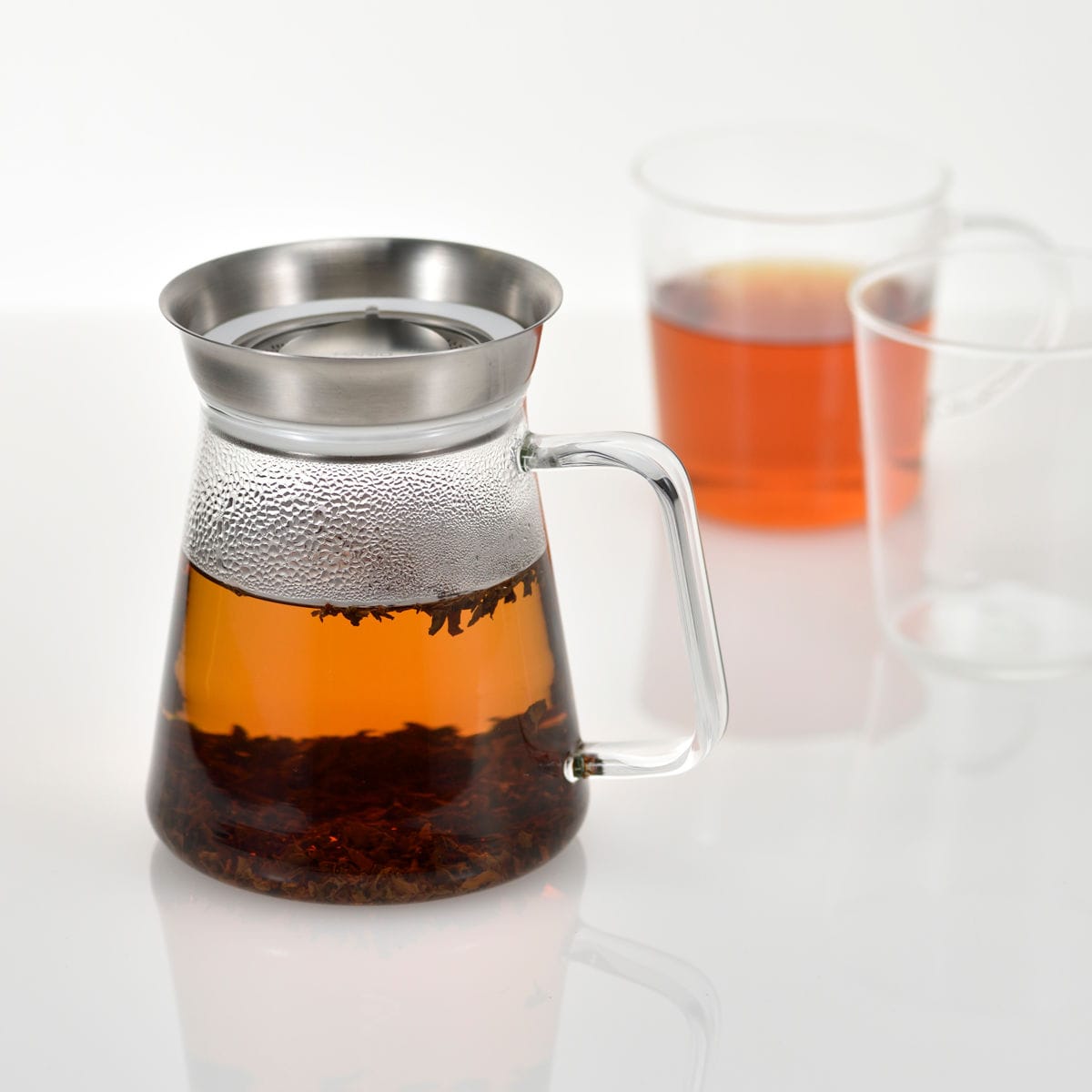 耐熱ガラスとステンレスを組み合わせた、美しく機能的なティーサーバーです。茶葉とお湯を入れるだけで紅茶・緑茶・ハーブティーなど幅広いお茶を手軽に淹れられます。耐熱ガラス製のため、熱湯はもちろん、冷たいドリンクにもお使いいただけます。2~3人分にちょうど良い450mlサイズです。