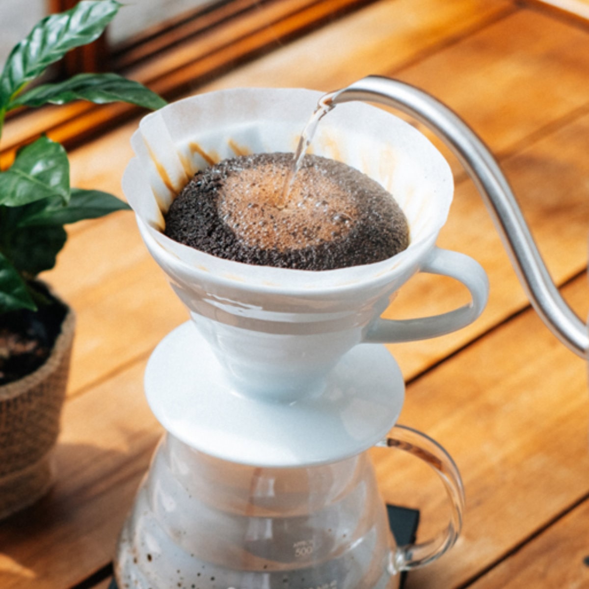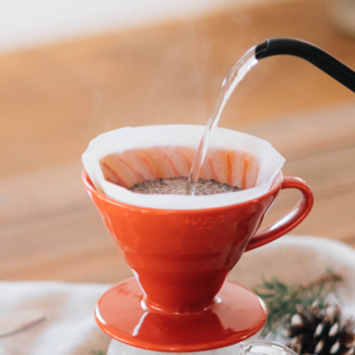 コーヒー粉の層を深く保ち、お湯が中心へまっすぐ抜ける構造です。注湯スピードを変えるだけで、スッキリ軽めからコク深い味わいまで自由に調整可能です。抽出コントロール性が高く、初心者からこだわり派まで扱いやすい設計です。