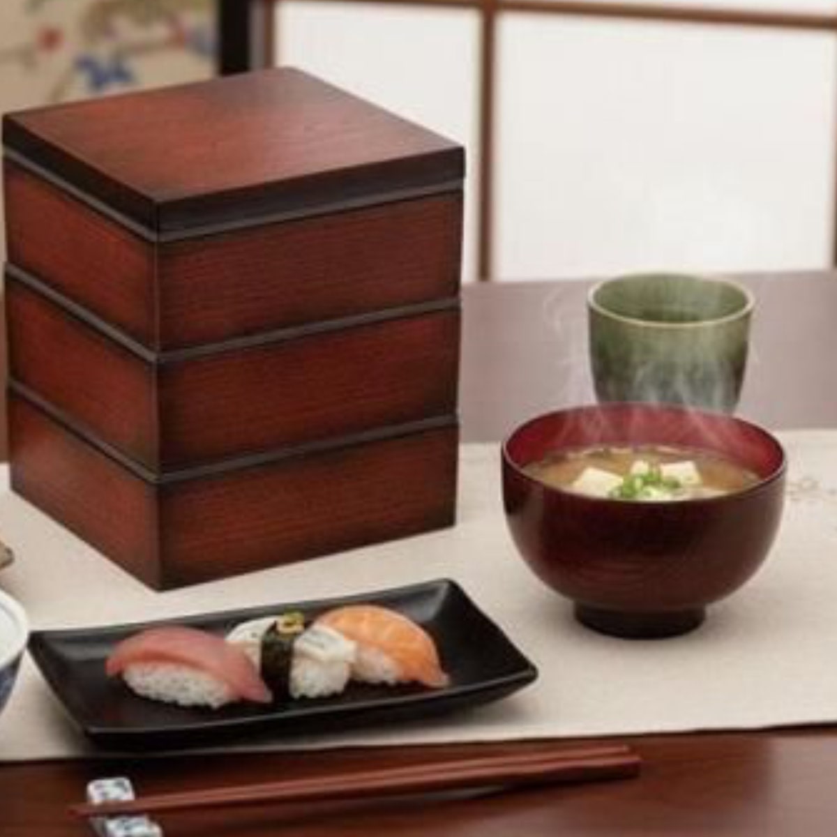 ●内側は赤塗り仕上げで具材が映え食卓を明るく演出します。