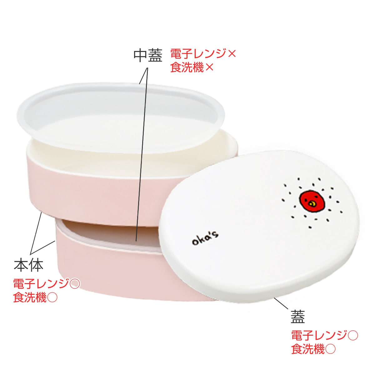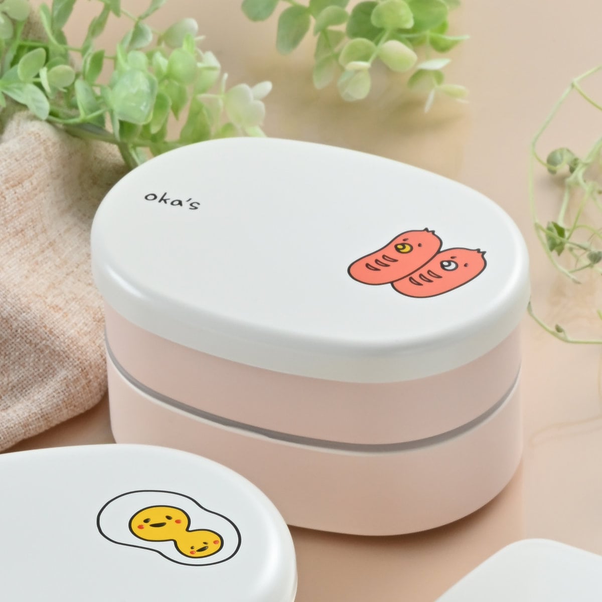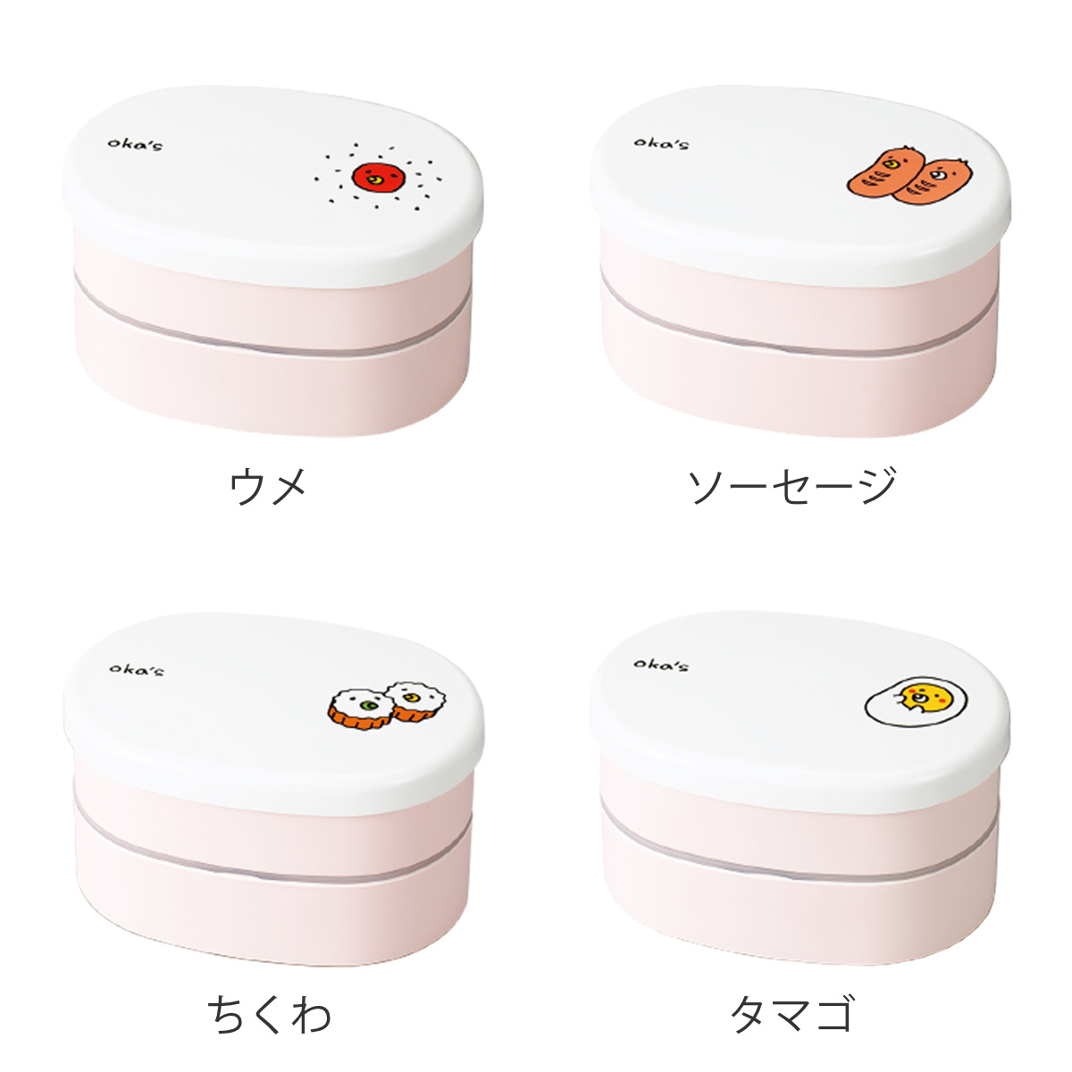 ●お弁当に合う具材を可愛くデザインした「OKA'S」シリーズのミニオーバル弁当箱です。