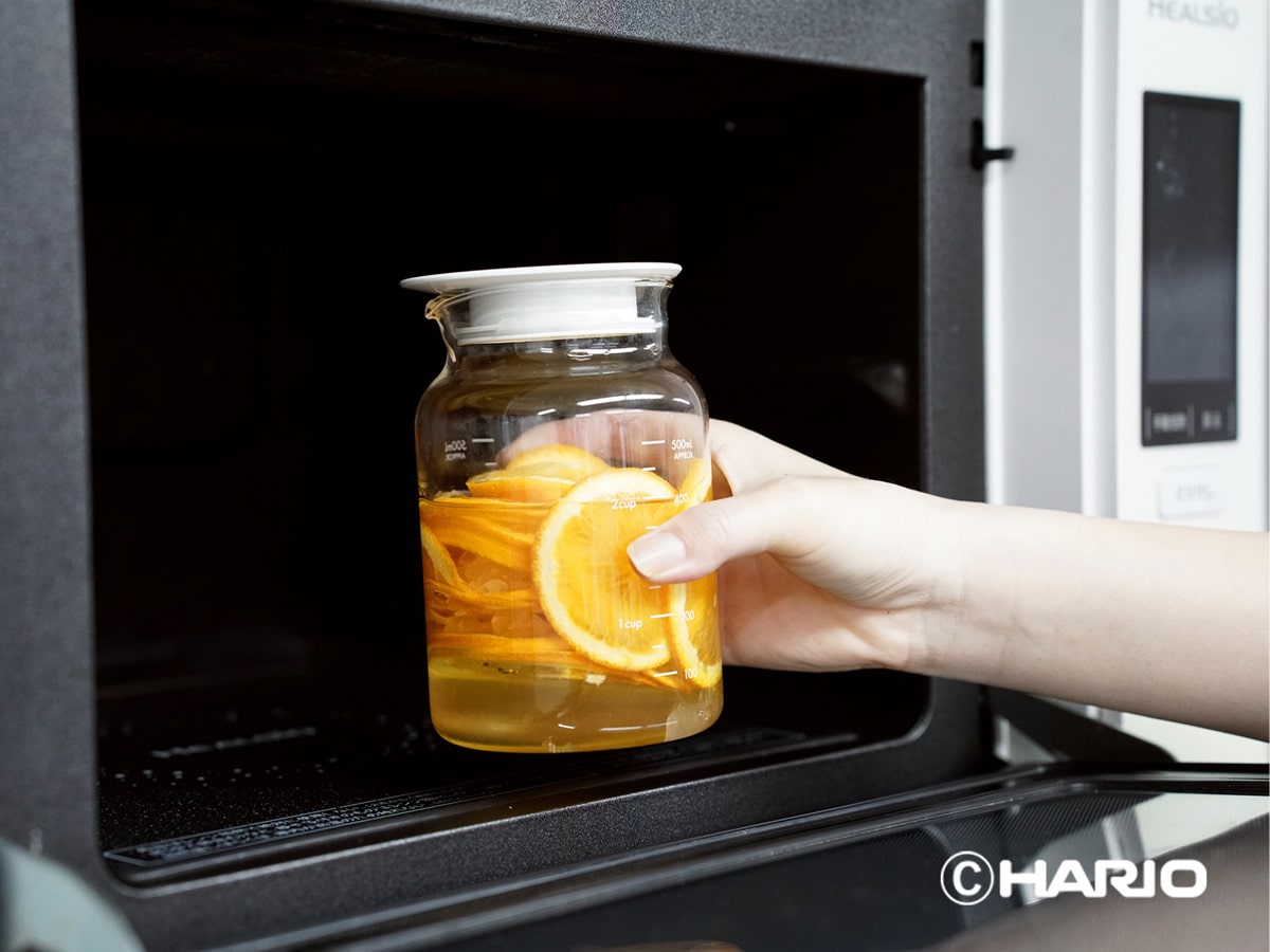 フルーツシロップはもちろん、ビネガードリンク、水出しティー・コーヒーバッグでの抽出、出汁づくりや調味料入れなど幅広く使えるポットです。本体にメモリが付いているので、分量がパッと確認できてとても便利です。