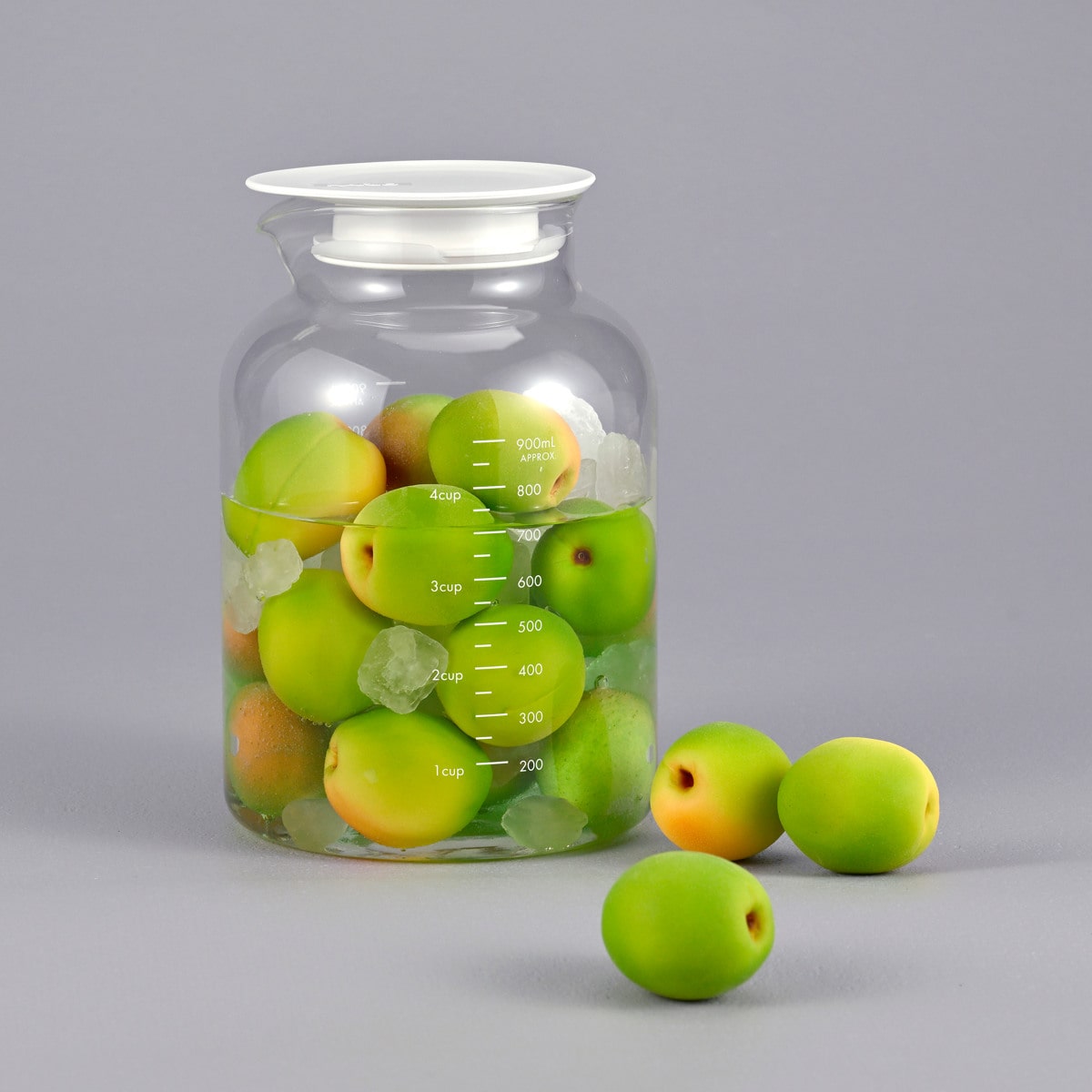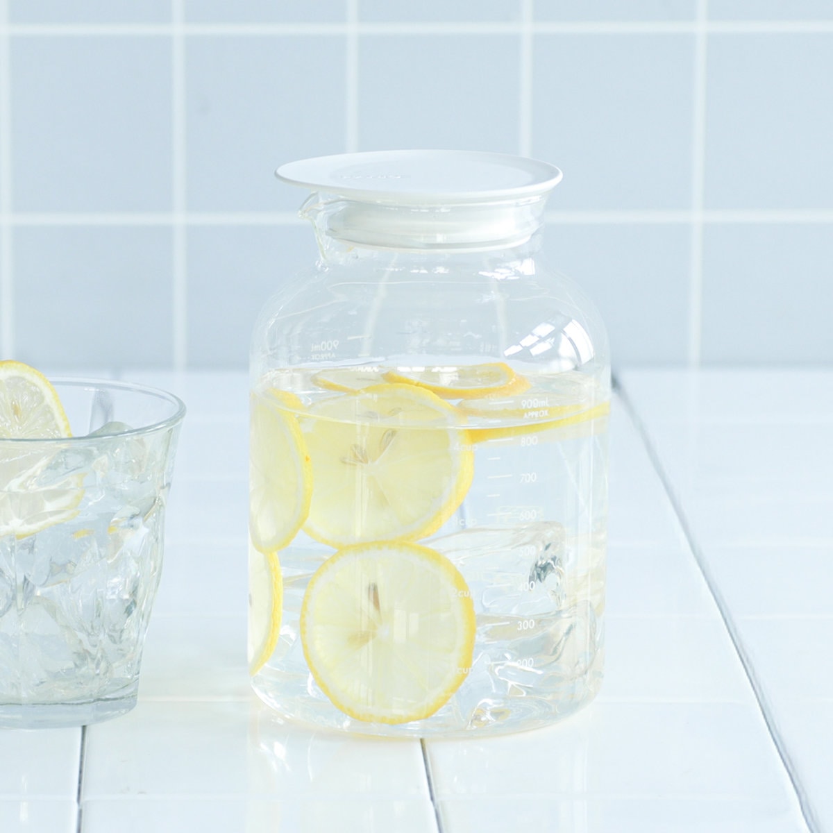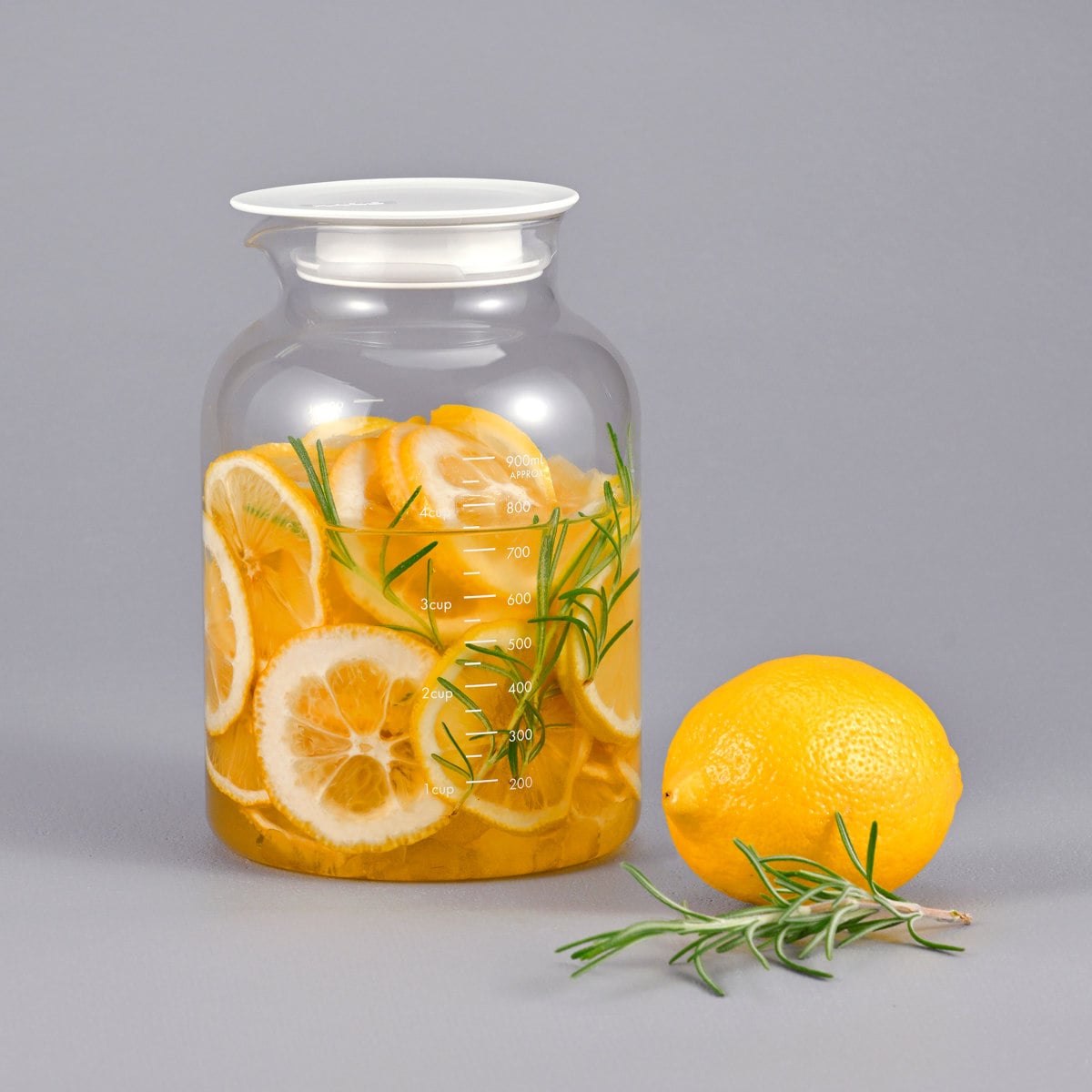フルーツシロップはもちろん、ビネガードリンク、水出しティー・コーヒーバッグでの抽出、出汁づくりや調味料入れなど幅広く使えるポットです。本体にメモリが付いているので、分量がパッと確認できてとても便利です。