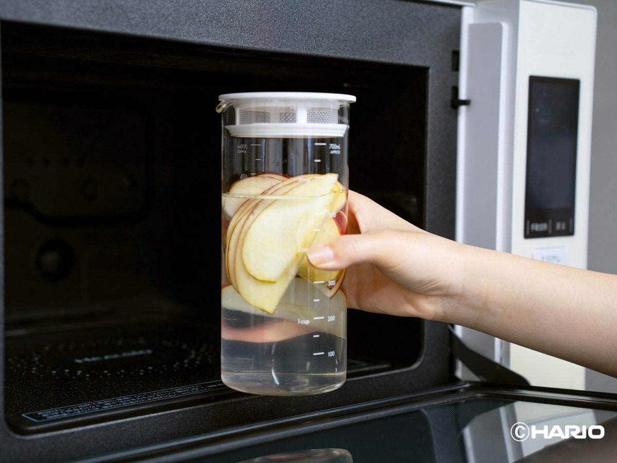 フルーツシロップはもちろん、ビネガードリンク、水出しティー・コーヒーバッグでの抽出、出汁づくりや調味料入れなど幅広く使えるピッチャーです。本体にメモリが付いているので、分量がパッと確認できてとても便利です。