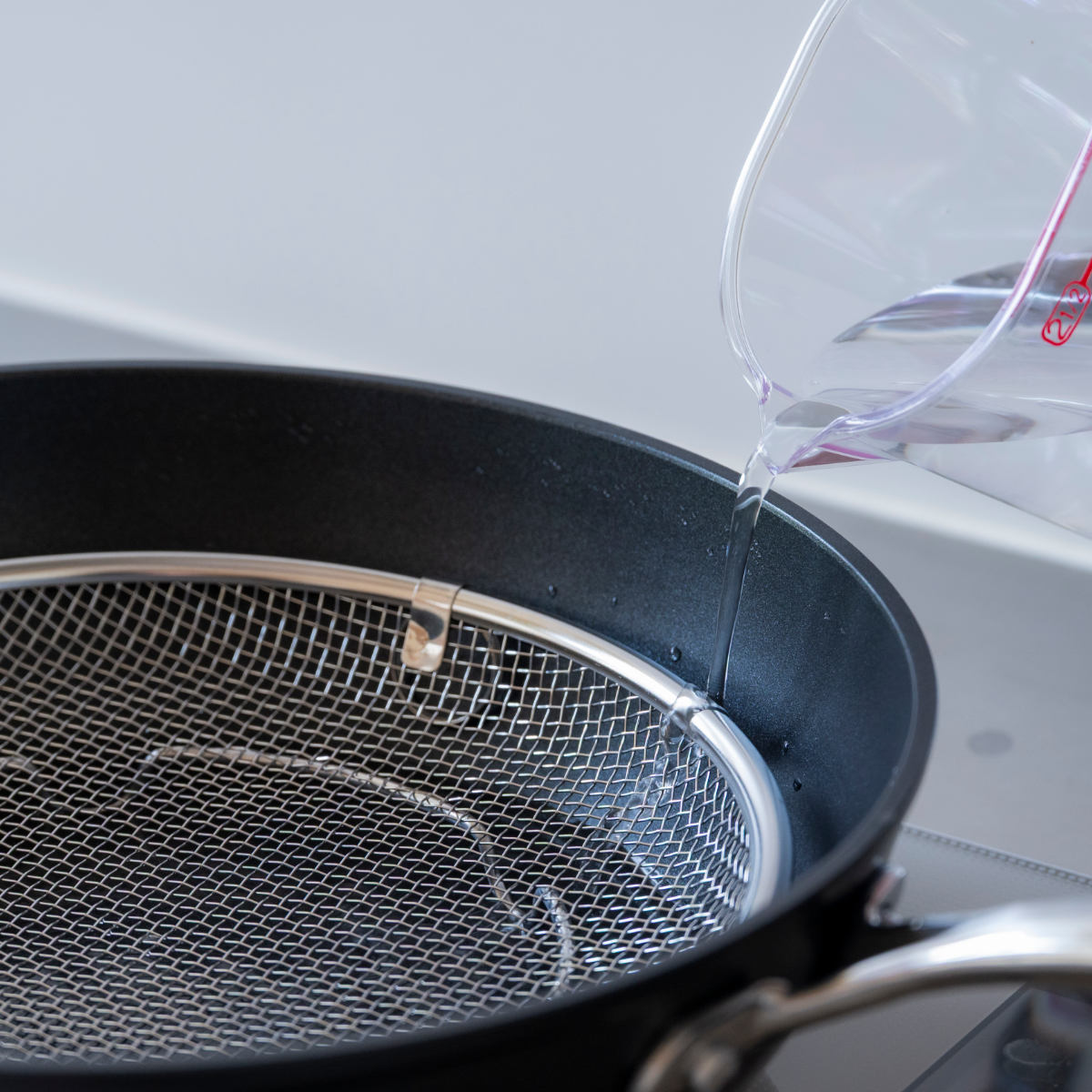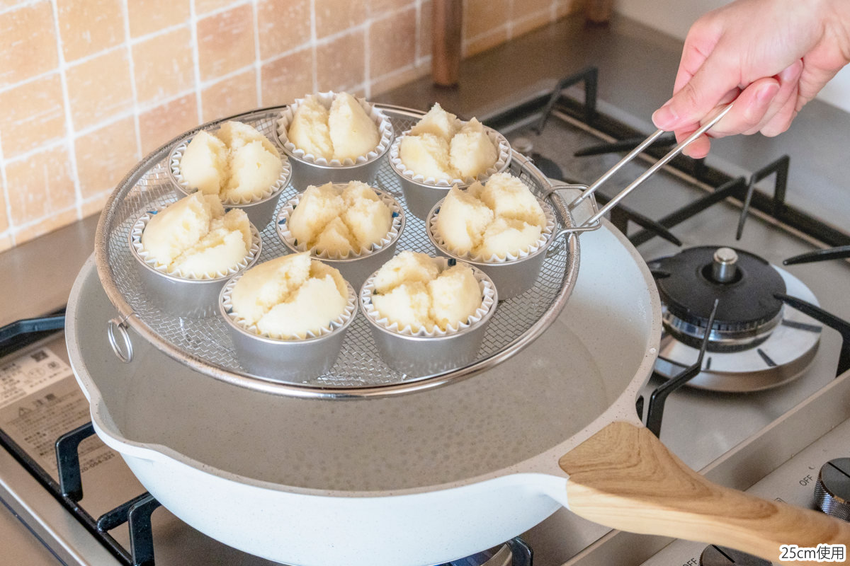 フライパンに収まる脚付き盆ざるセット