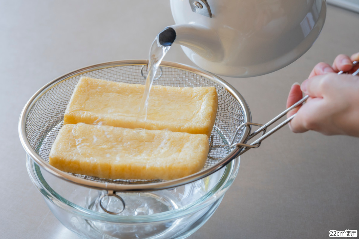 持ち上げ用のフックが付属しているので、熱くなった盆ざるも安心して取り出せます。食材を移す際も、手を汚さずにざるごと移動できるので便利です。
