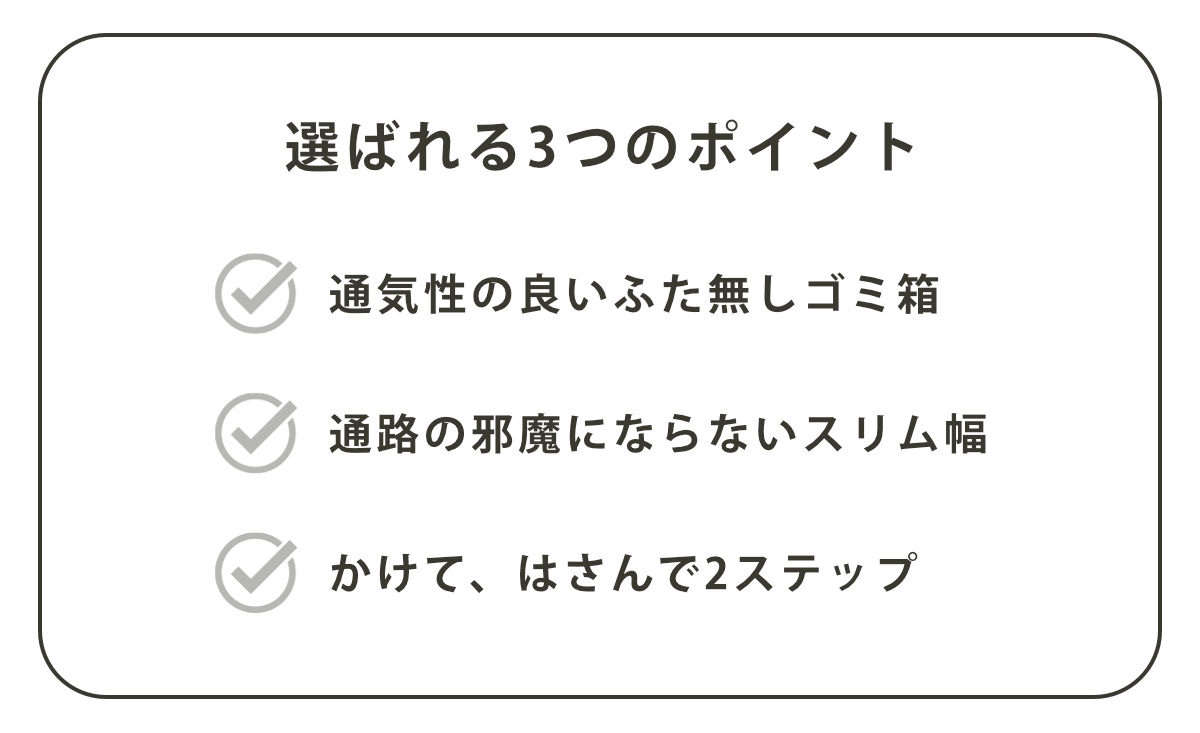 | 対応サイズ | ポリ袋:45L用(約 幅65×高さ80cm) ※2分別時:30L用×2枚 |
