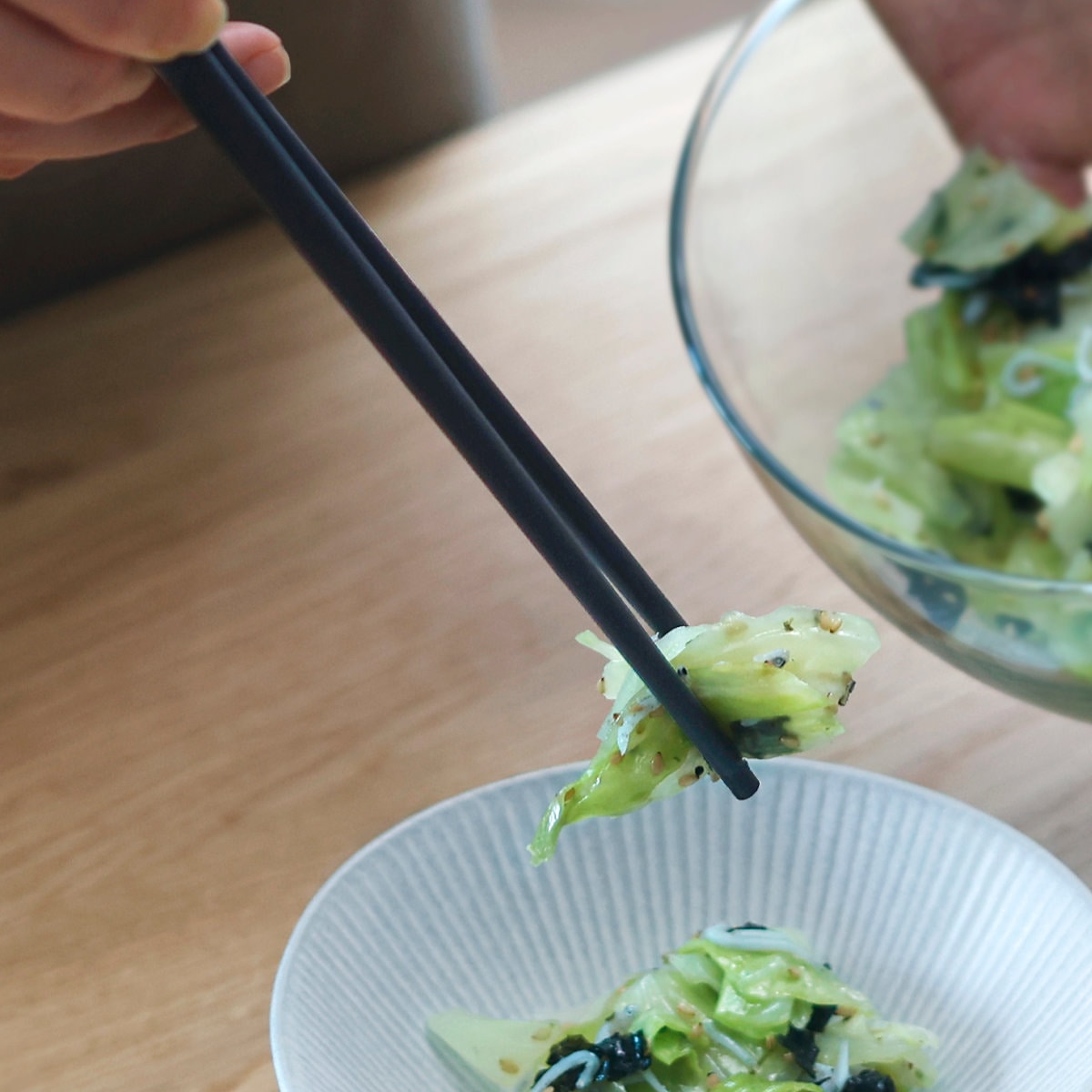 金属芯を使っていないため箸先が軽やかで扱いやすく、細かく刻んだ野菜やつるっと滑りやすいこんにゃくもしっかりつかめます。