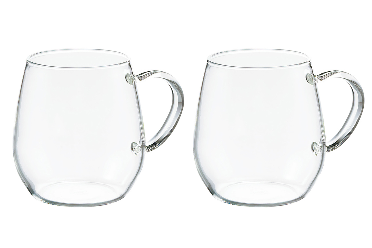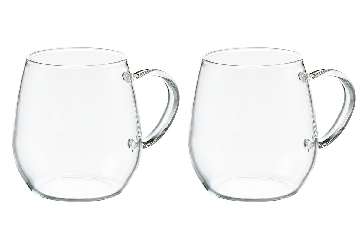 熱い飲み物にも冷たい飲み物にも対応できる、耐熱ガラス製のマグカップ2個セットです。透明感のあるガラスが、ラテやフルーツティー、レモン水などの美しい色合いを引き立てます。コロンとしたかわいい形で、見た目でも楽しめるマグカップ。2個入りなのでギフトにもおすすめです。