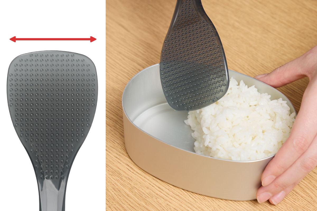 平らな先端形状で、ごはんを切るようにほぐしやすく、粒をつぶさずふんわりと仕上げます。炊飯器の底や角にもフィットしやすく、すくいやすくきれいによそえます。