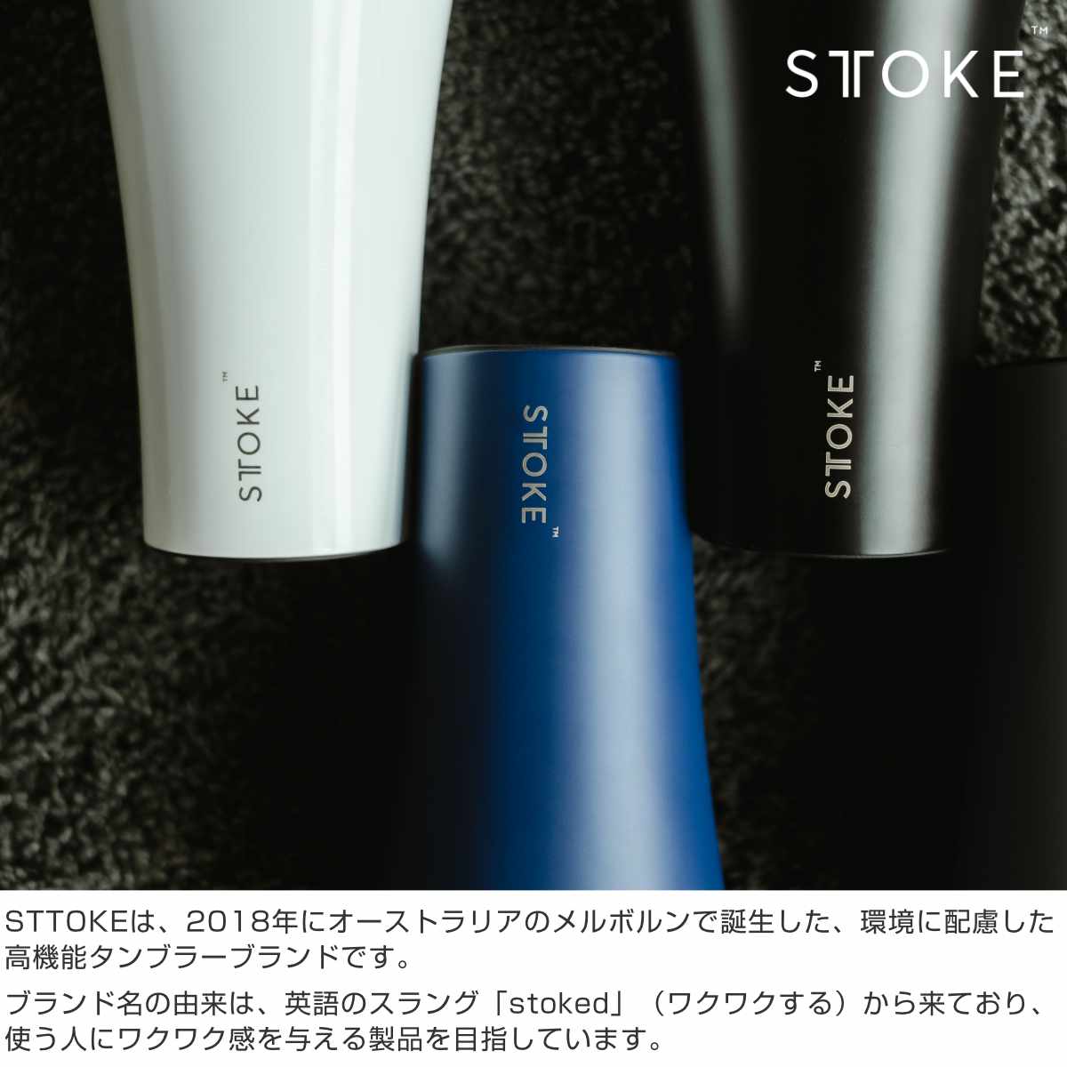 STTOKEは、2018年にオーストラリアのメルボルンで誕生した、環境に配慮した高機能タンブラーブランドです。ブランド名の由来は、英語のスラング「stoked」(ワクワクする)から来ており、使う人にワクワク感を与える製品を目指しています。