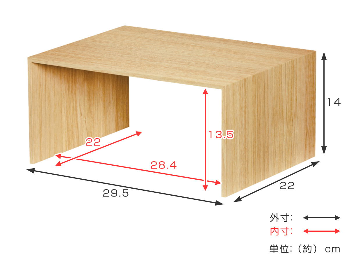 | サイズ | 外寸:約 幅29.5×奥行22×高さ14(cm) 内寸:約 幅28.4×奥行22×高さ13.5(cm) |