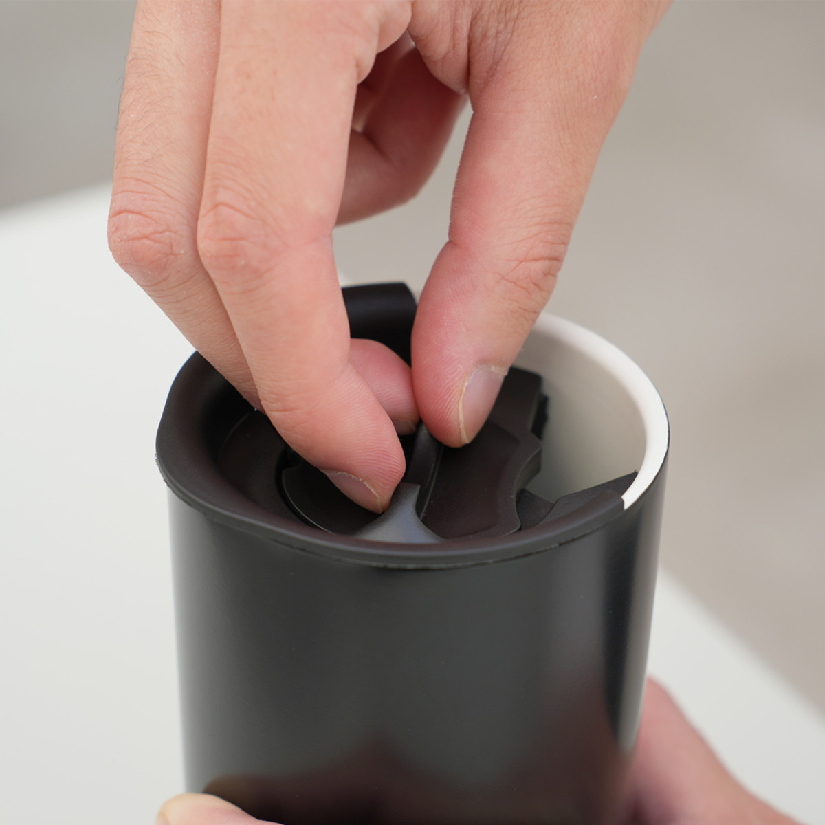 フタに鼻や唇が当たりにくい、自然な口当たりの設計です。フタ付きでありながら、マグカップのような飲み心地で快適にお使いいただけます。