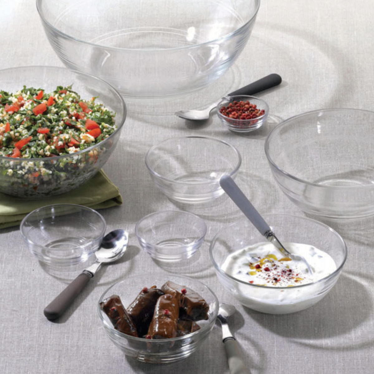 シンプルで飽きのこないデザインが魅力のガラス製シリーズ。サラダやフルーツ、デザート、調味料入れまで、サイズごとに幅広く活躍します。透明感のあるガラスが料理を美しく引き立て、日常使いからおもてなしのテーブルまで活用できる万能なアイテムです。重ねて収納できるので、省スペースで片付けやすいのも嬉しいポイントです。