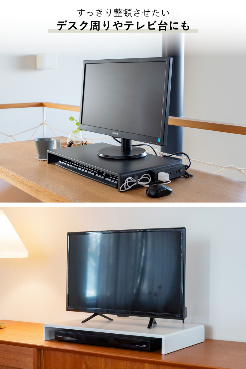 ごちゃつきがちなデスク周りの整理や、テレビ台としての使用にもピッタリです。カバー下にはキーボードやレコーダー、リモコンなどをすっきり収納できます。スチール製の本体にはマグネットも取り付けられるため、コード類の整理にも便利です。