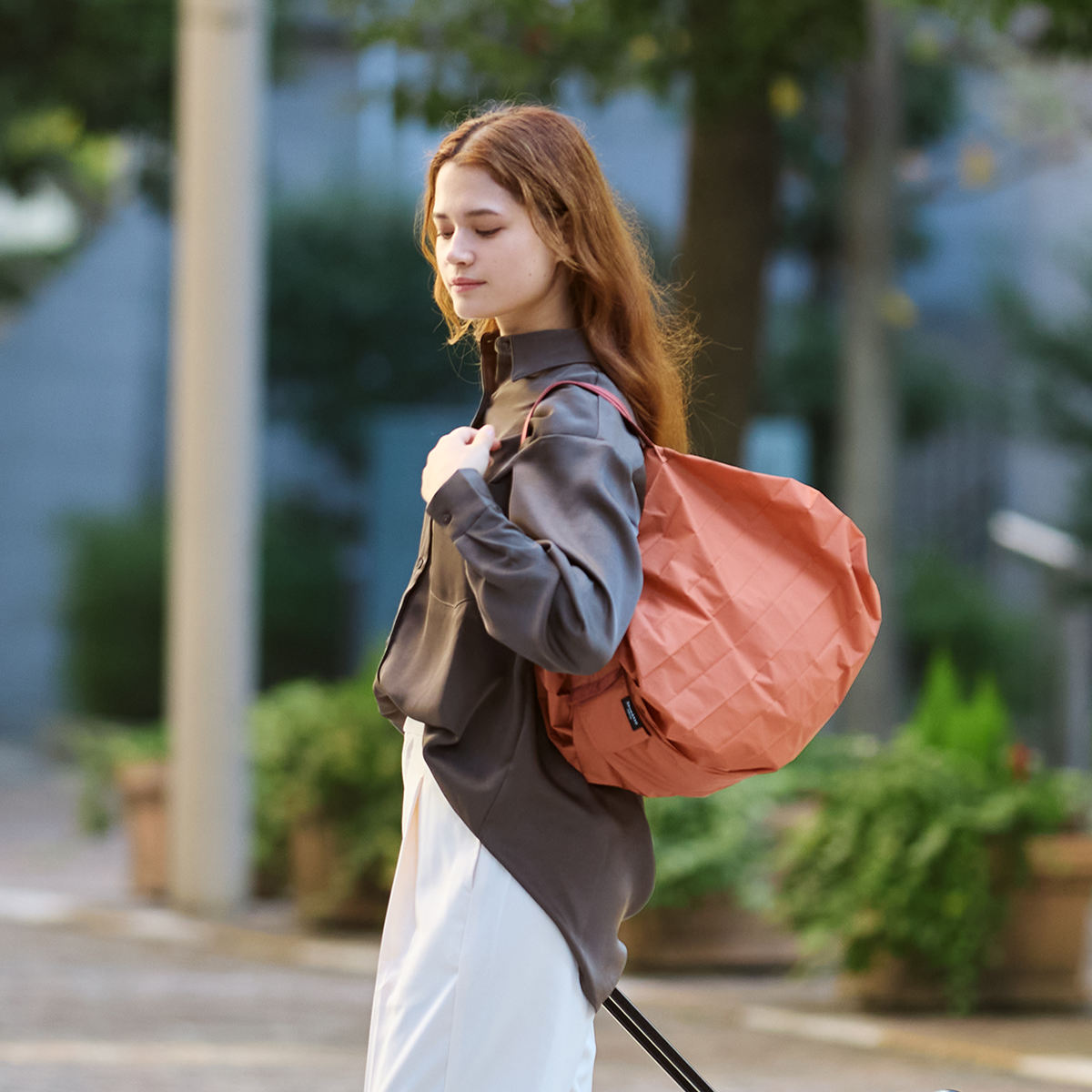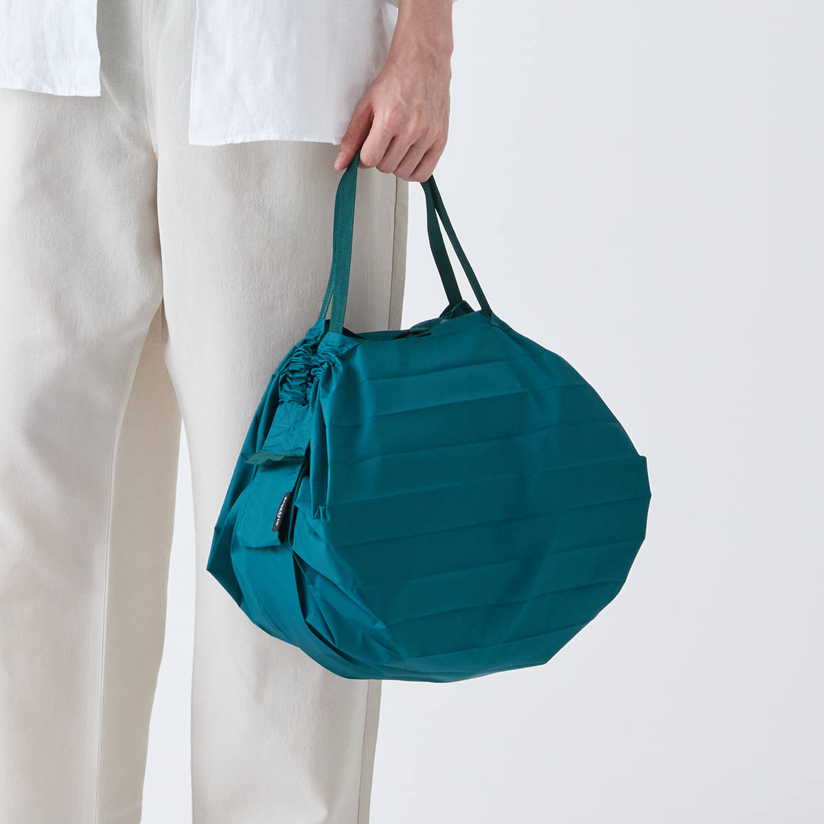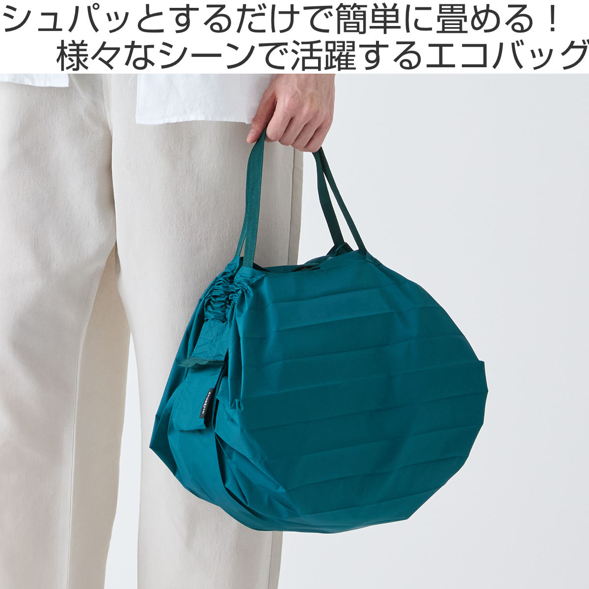 折りたたんで丸めた後も、持ち運びしやすいコンパクトサイズです。ポケットやミニバッグにも入るので、お買い物だけでなくアウトドアや旅行など日常の様々なシーンで活躍します。