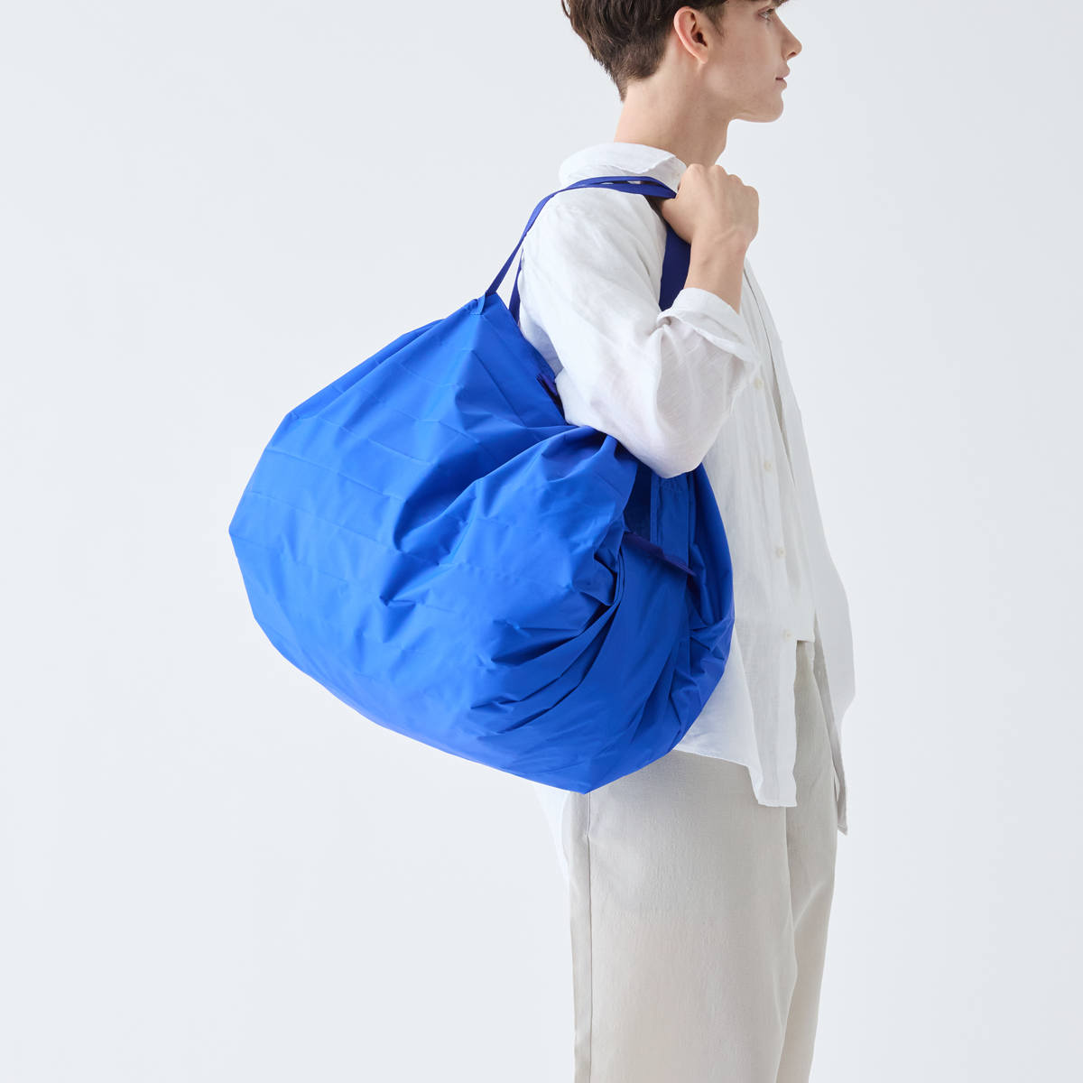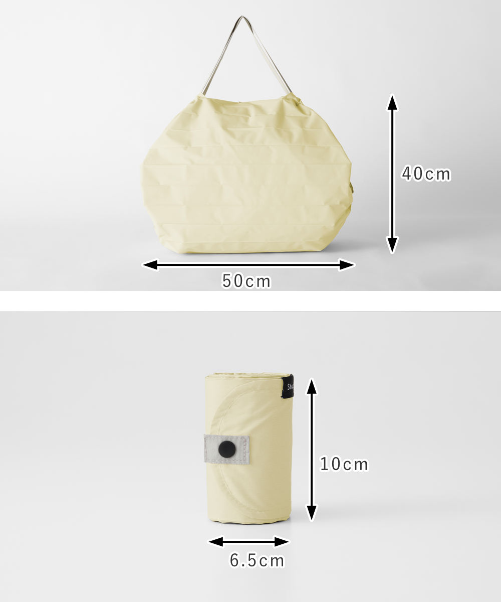 折りたたんで丸めた後も、持ち運びしやすいコンパクトサイズです。ポケットやミニバッグにも入るので、お買い物だけでなくアウトドアや旅行など日常の様々なシーンで活躍します。