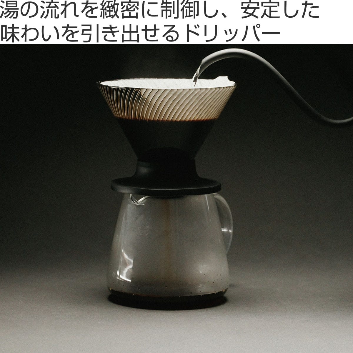 本体のリブは底部へと連続的につながり、最後までスムーズに湯が流れる構造です。湯の滞留を抑えることで雑味やえぐみを軽減し、すっきりとしたクリアな味わいとフレーバーの輪郭を引き立てます。