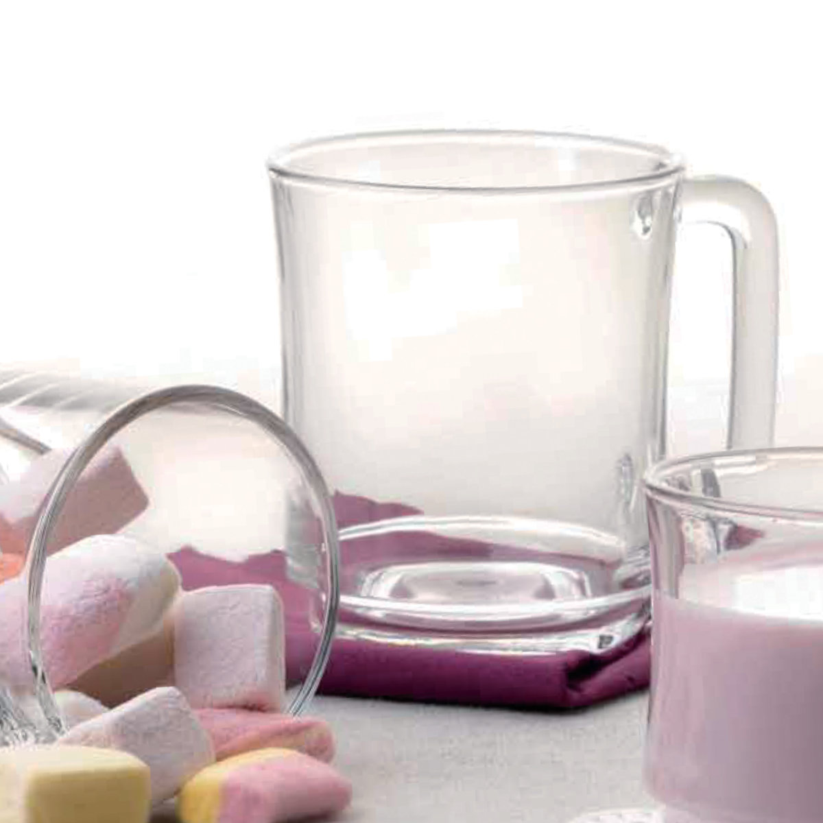 持ちやすいハンドル付きで、コーヒーや紅茶はもちろん、スープやホットドリンクにも幅広く対応します。ガラス製のため匂いや色移りがしにくく、いつでも清潔にお使いいただけます。