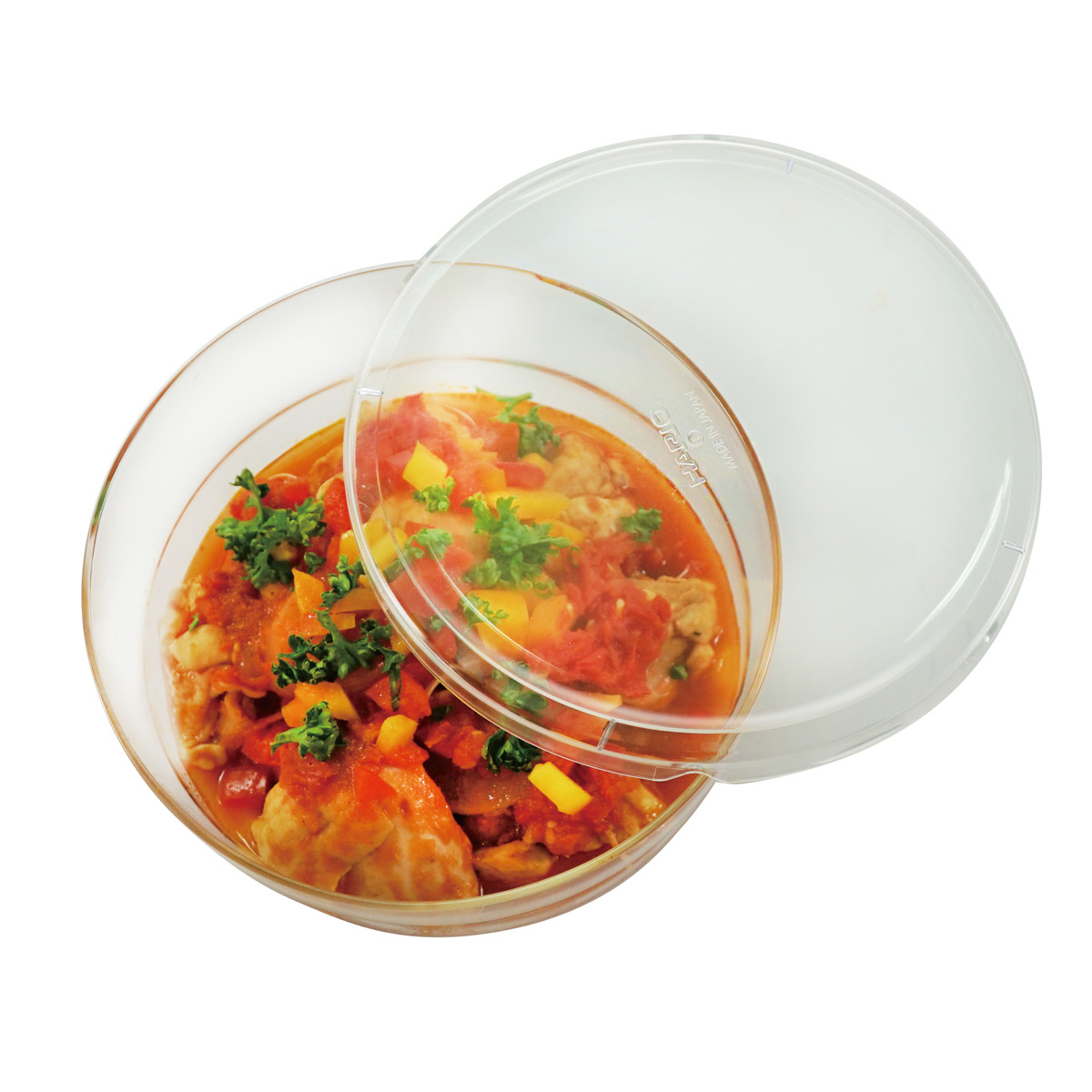 耐熱ガラス製のため、湯せんや電子レンジでの加熱にも対応し、調理から保存まで幅広く活躍します。におい移りがしにくく、清潔に使いやすいのも特長です。