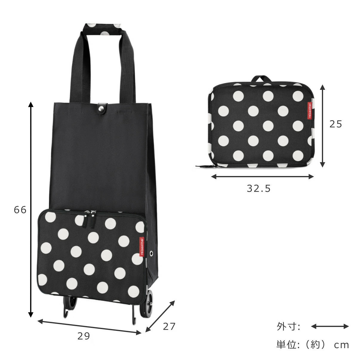 | サイズ | 【ショッピングカート】 約 幅29×奥行27×高さ66(cm) (タイヤ下からバッグ上部まで、持ち手含まず) 収納時:約 幅32.5×奥行6.5×高さ25(cm) 【エコバッグ】 約 幅45×奥行7×高さ53.5(cm) 収納時:約 幅5×奥行2×高さ10.5(cm) 【ポーチ】 約 幅23×高さ17(cm) |