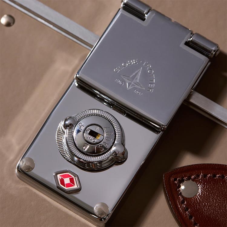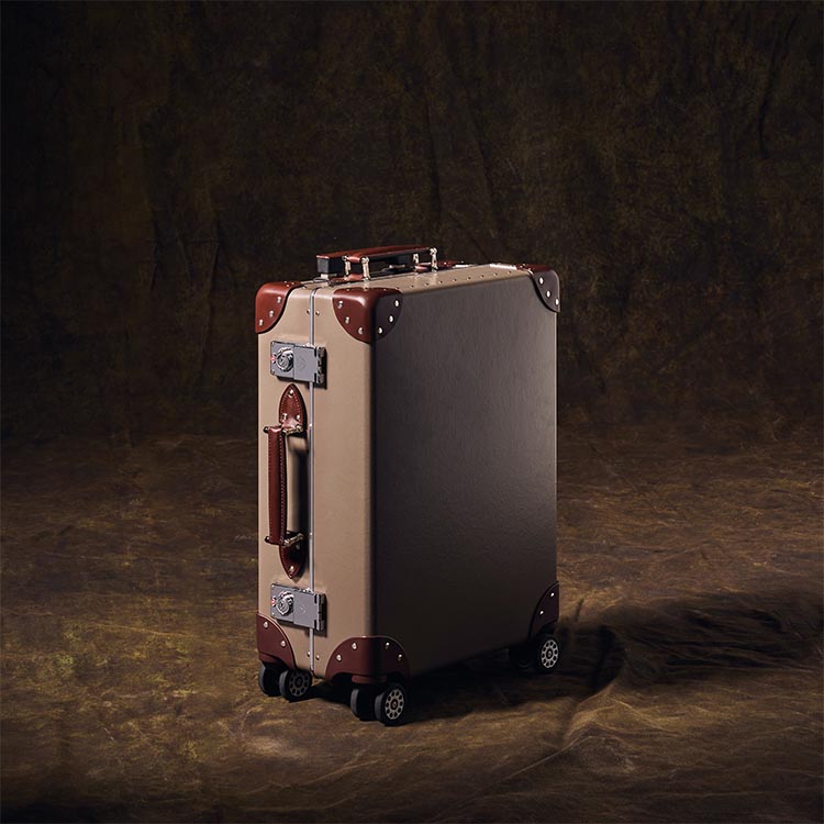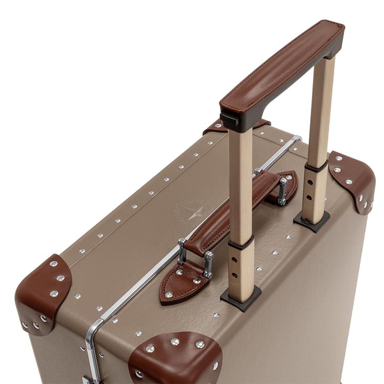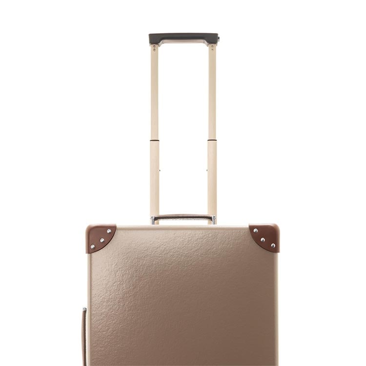 ホイールのハブキャップやハンドルのスクリューには、グローブ・トロッターのシグネチャー「ノース・スター」ロゴが施され、コーナーのリベットにはドーム型のリベットを用い、すっきりとした美しいフォルムにデザインされています。