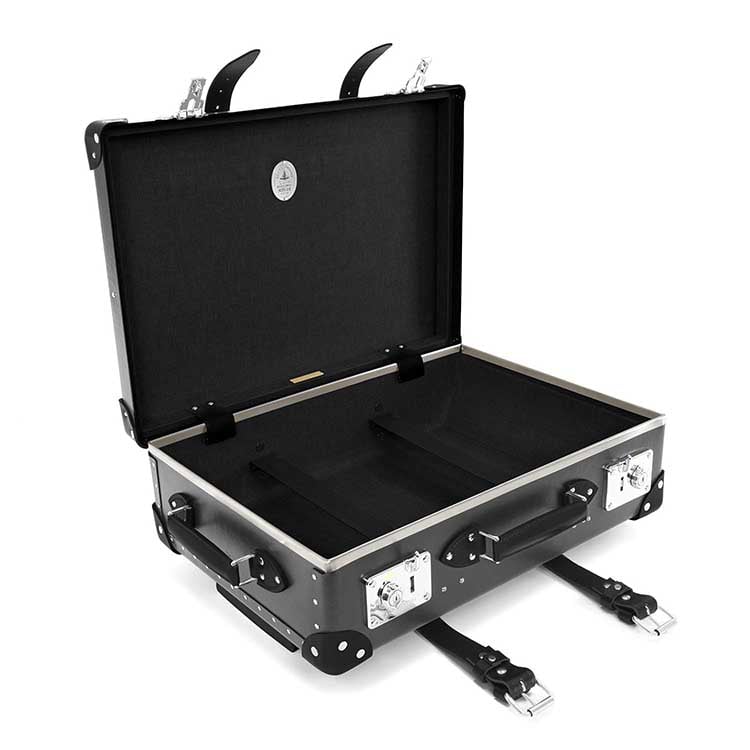 グローブ・トロッターの象徴であるバルカナイズドファイバーボードによって生み出される、軽やかでありながら耐久性を備えた構造。クラシカルな佇まいが魅力の2輪スーツケースは、片面開きで収納部がフラットな為、きっちりと荷物を隙間なく詰め込むことができます。また、省スペースでの荷物の出し入れが簡単。