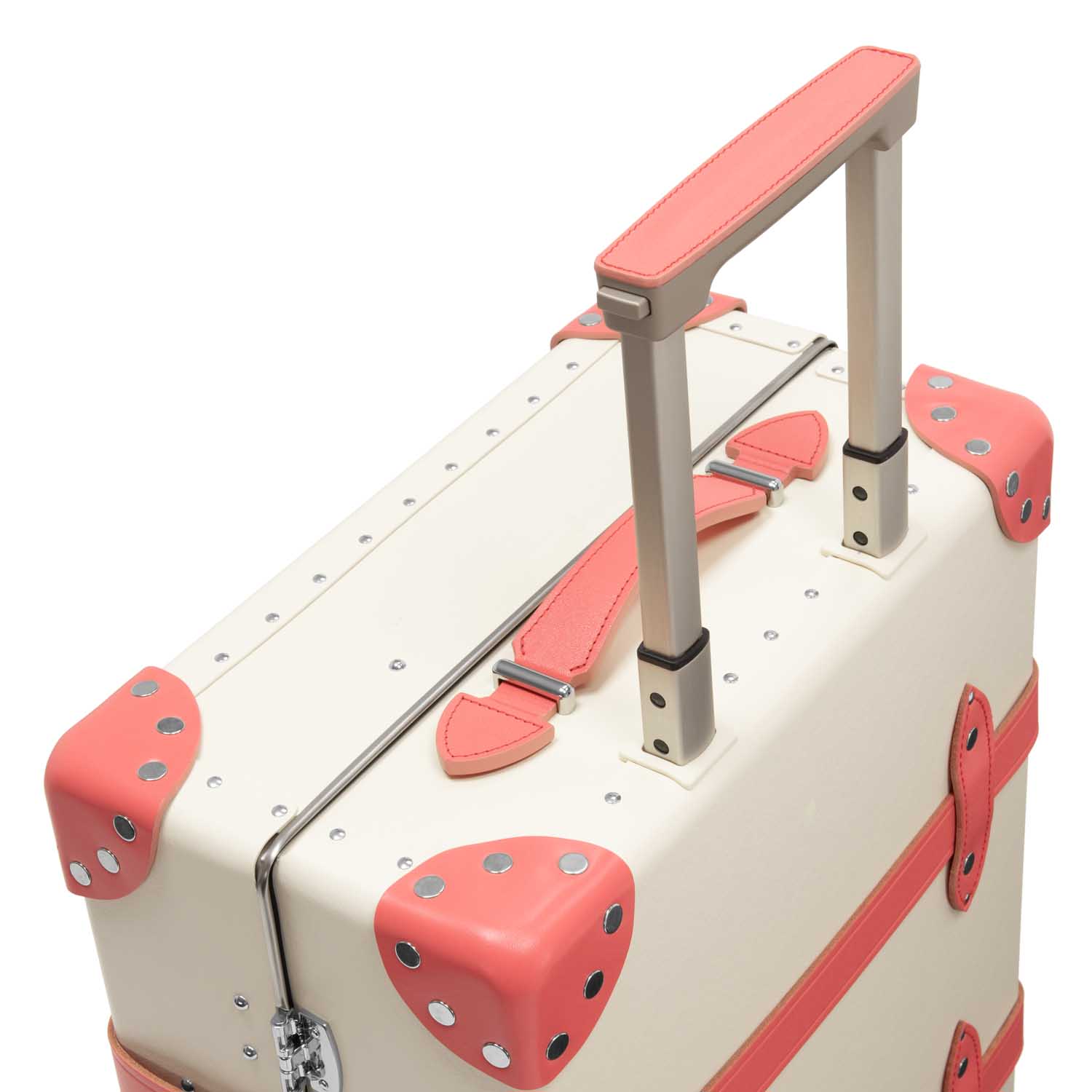 アイボリー色のヴァルカン・ファイバーのボディに、夢のような薄紅色の夕焼けを想起させる「フラミンゴピンク」のレザー ディテールがアクセント。