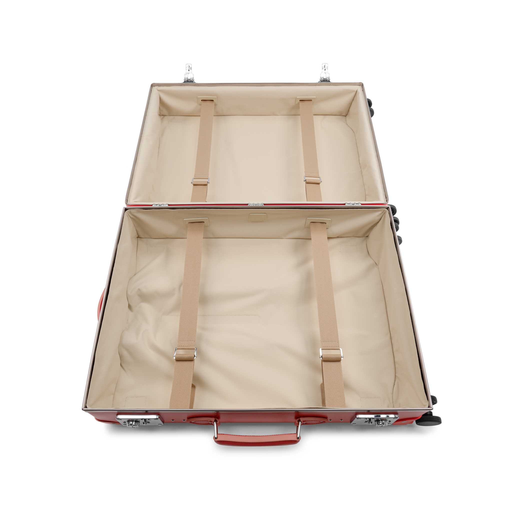 グローブ・トロッターの象徴であるバルカナイズドファイバーを採用したスーツケースは、軽量性と耐久性の理想的なバランスを実現し、360度スムーズに動く4輪キャスターにより、空港や駅、市街地での移動も快適そのものです。