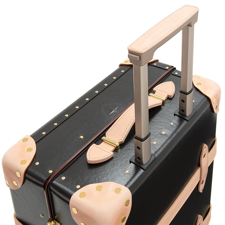 グローブ・トロッターの象徴であるバルカナイズドファイバーボードを採用したキャリーオンは、軽量性と耐久性の理想的なバランスを実現し、360度スムーズに動く4輪キャスターにより、空港や駅、市街地での移動も快適そのものです。