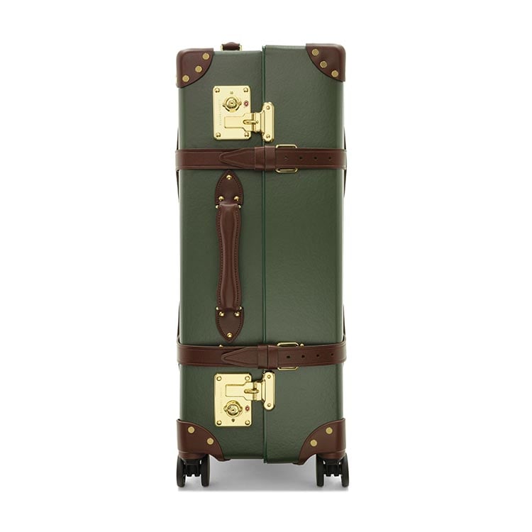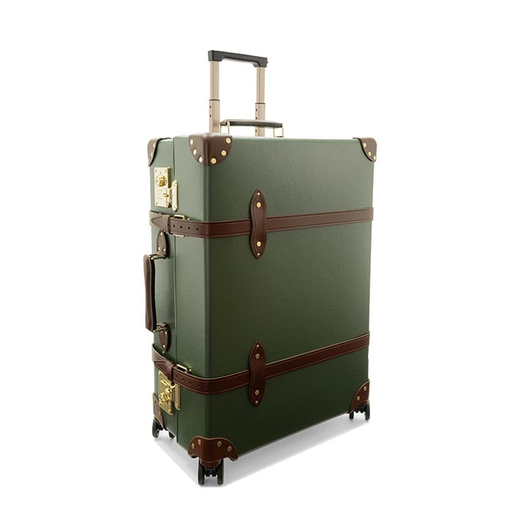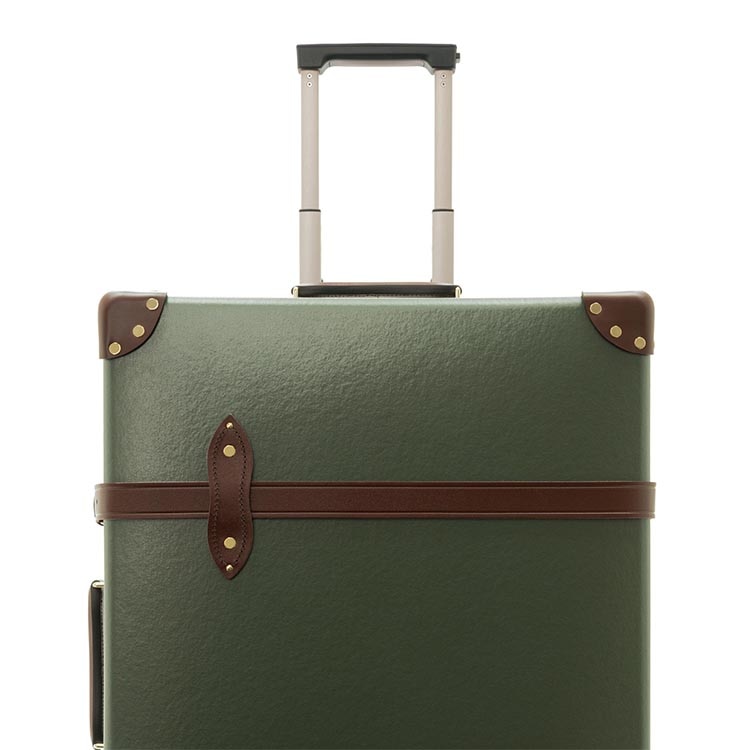 普遍的なデザインが魅力の定番コレクション「センテナリー」のグリーン/ブラウン カラー。クラシックなブラウンレザーとゴールドのパーツが、深いフォレストグリーンによく映えます。グローブ・トロッターのセンテナリーを代表するデザインです。