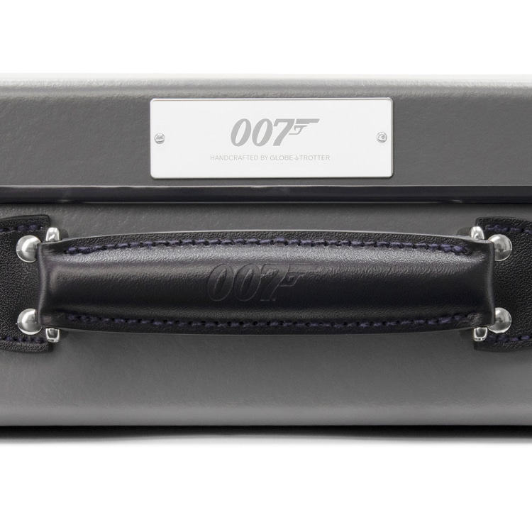 クラシカルなグレーカラーのボディに、コントラストの効いたグラファイトカラーのレザー、内装はネイビー。ボディ側面と内装パッチにはコレクションを象徴する「007」のロゴが施されています。