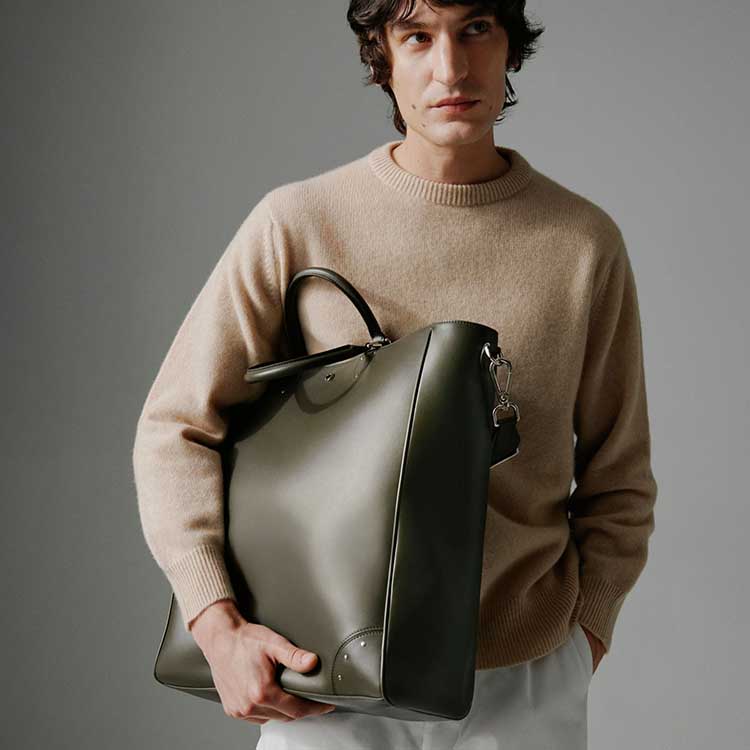 グローブ・トロッターのデザイン哲学を受け継ぎ、イタリアの熟練職人によって丁寧に仕立てられたレザートート。