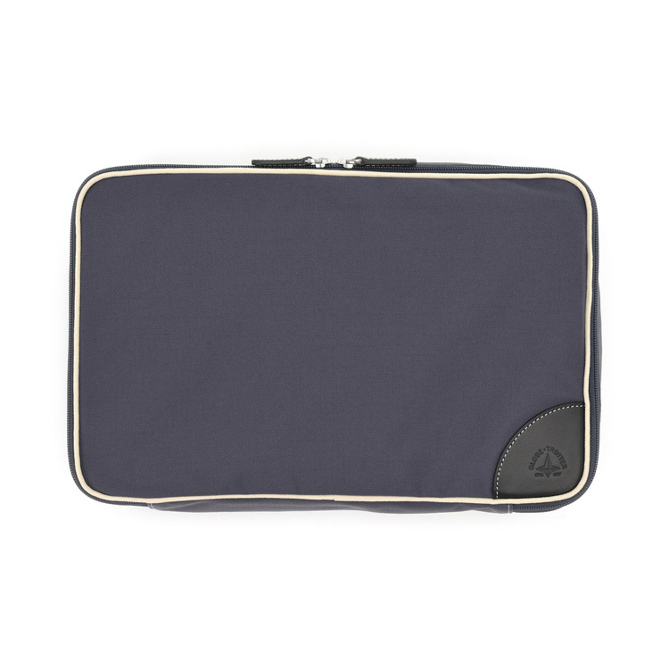 アイボリーのパイピングとステッチ、ノーススターロゴを施したブラックのコーナーで彩られたネイビーカラー。