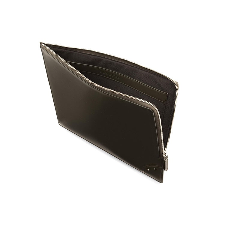 ジッパー付きのフォリオは、内側にスリップポケットを備え、必要な書類や13インチまでのノートPC、タブレットをひとつにまとめて収納可能です。