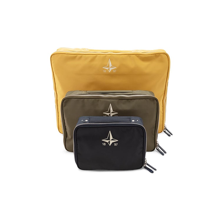 機能性と上品な質感を兼ね備えた高密度ナイロン素材で撥水性に優れ、スーツケース内でも美しさを保ちます。