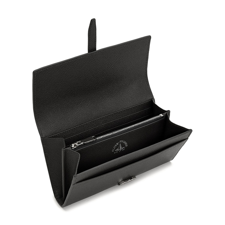 最高級ウィンザーグレインレザーを使用したエレガントなグローブ・トロッターのフラップオーバーパース。