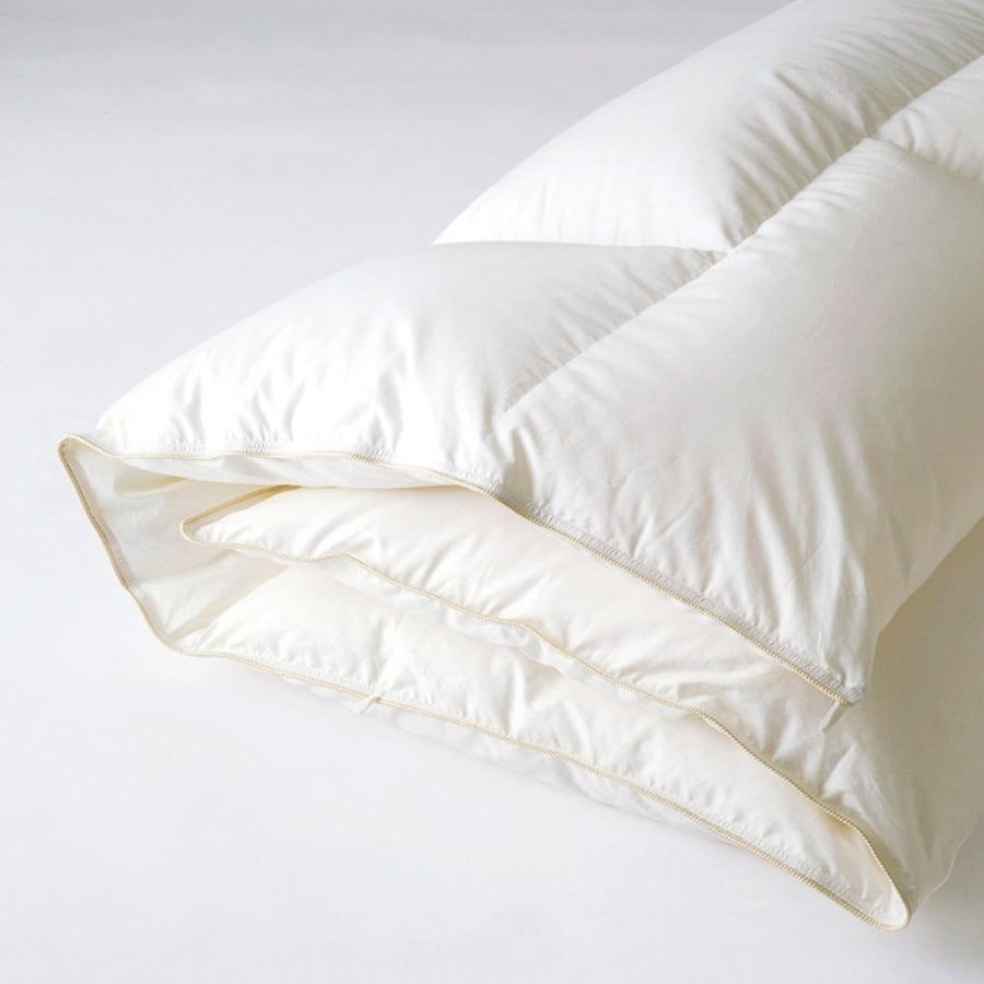 最高級羽毛の暖かさをそのままに、軽やかに体に寄り添うダウンコンフォーターです。